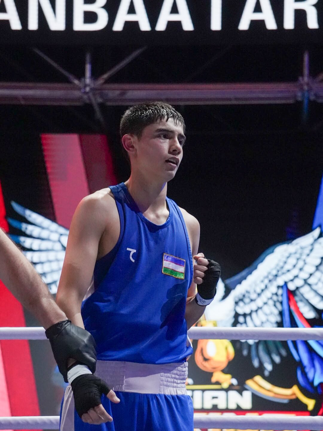 Uzbekistan’s Asian U22 Champion Abdullokh Madaminov received the right to compete for the elite national team for the very first time but he had a strong start against Singapore’s Caelan Clark which resulted a stoppage in the third round.