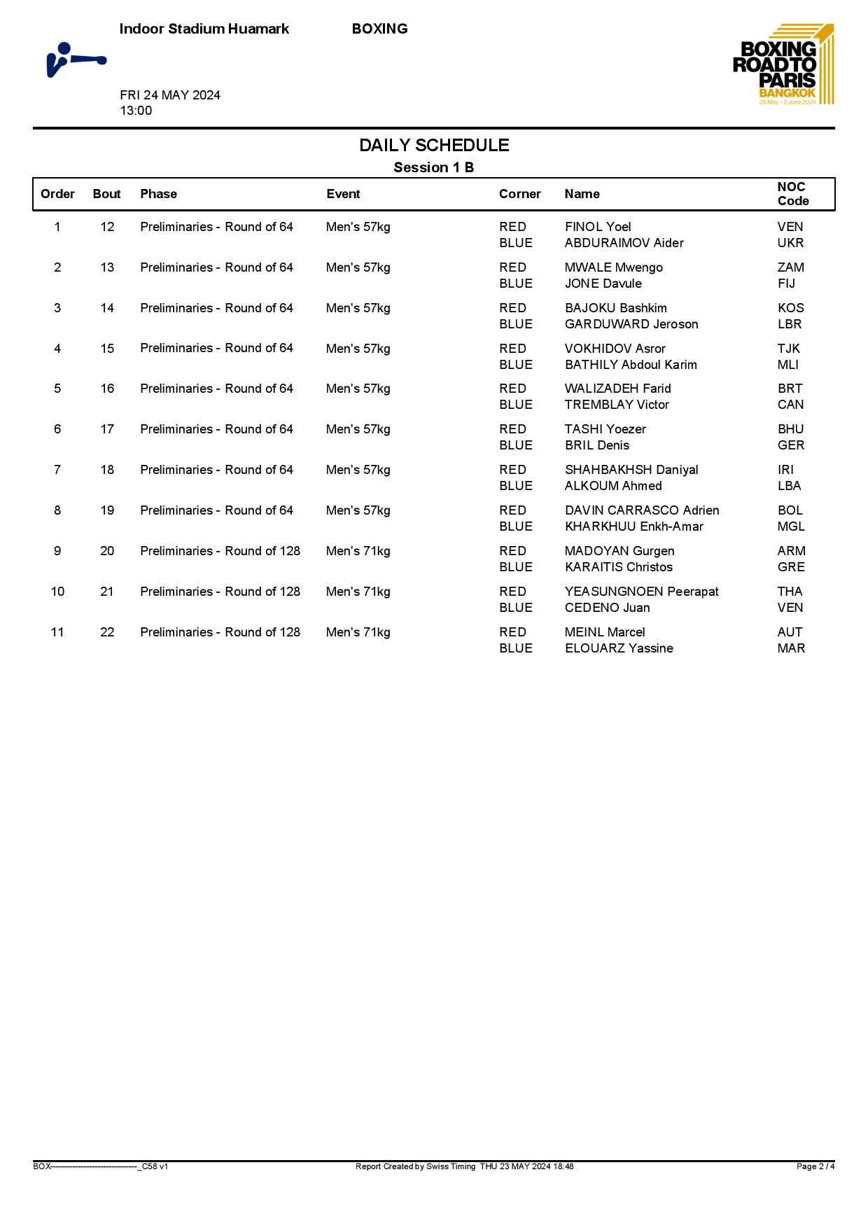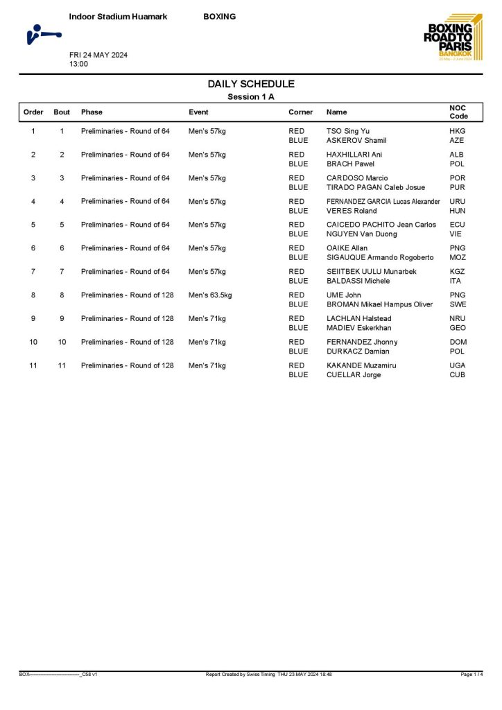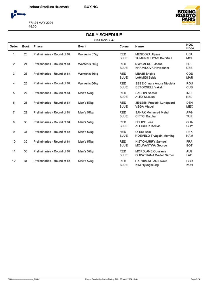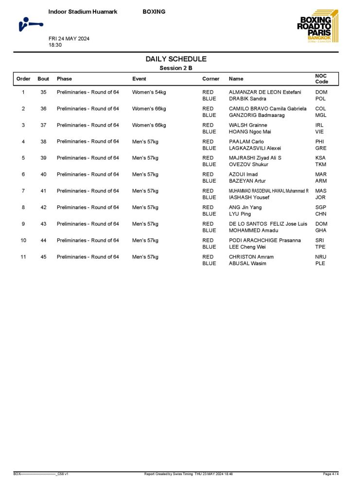 2nd World Olympic Boxing Qualifying Event - Day1 Schedule on May 24