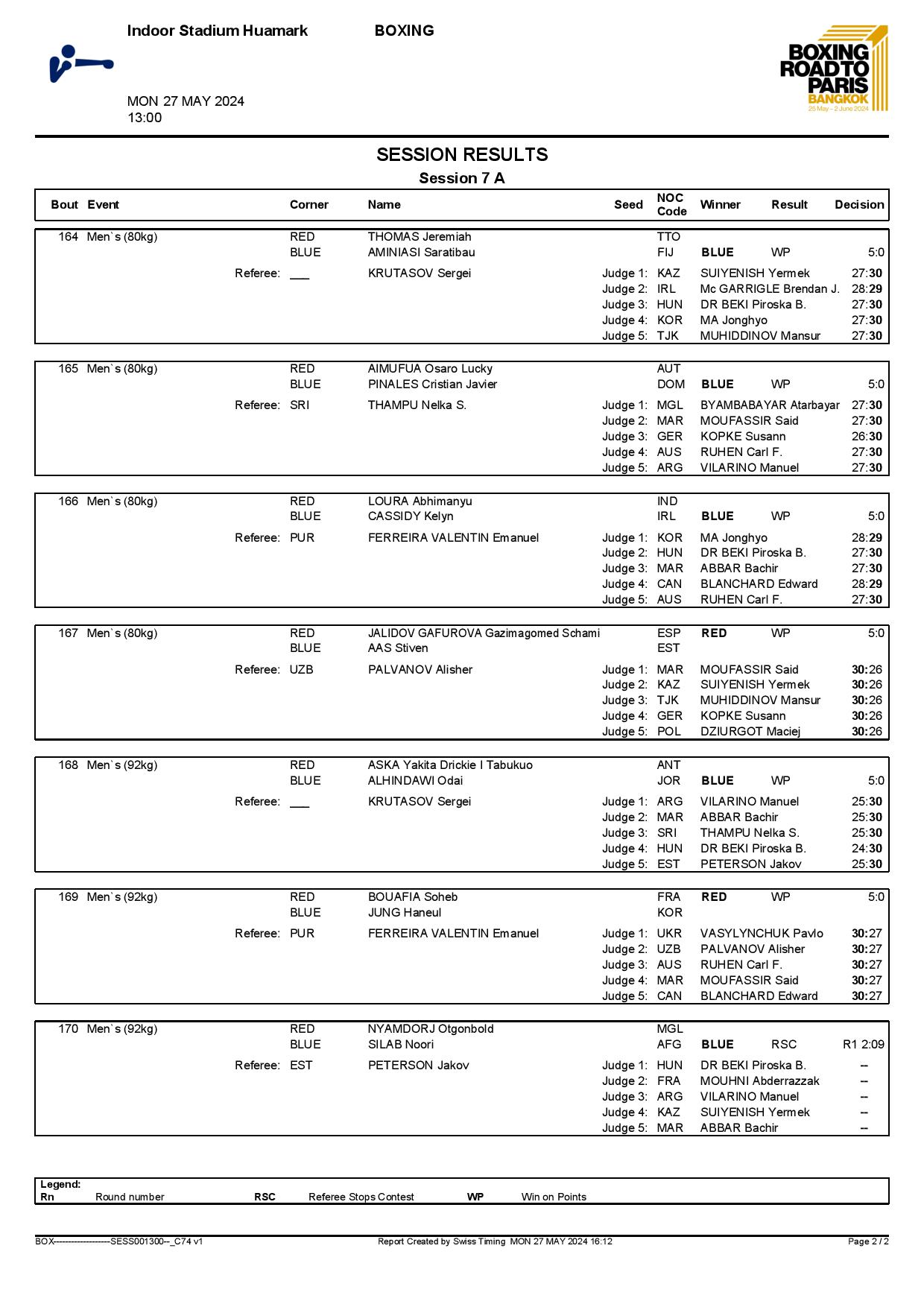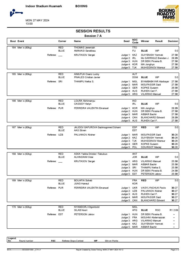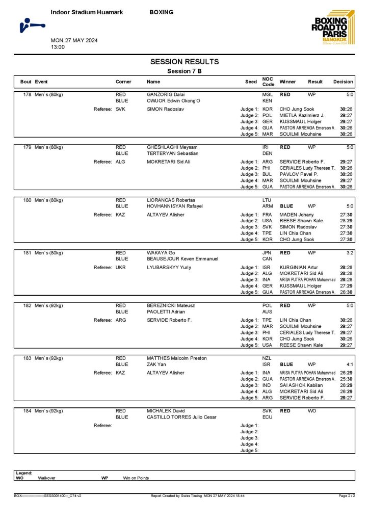 2nd World Olympic Boxing Qualifying Event in Bangkok, Thailand - Day4 Session7 Results