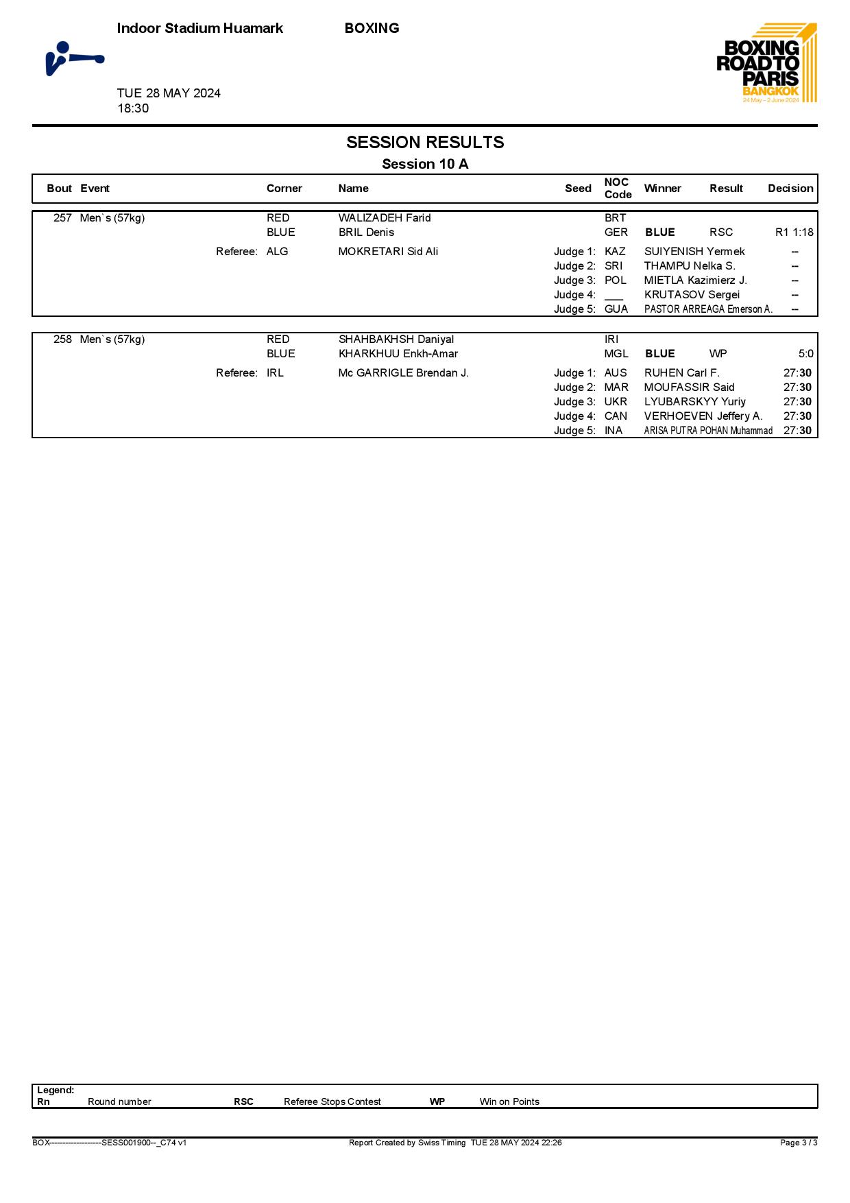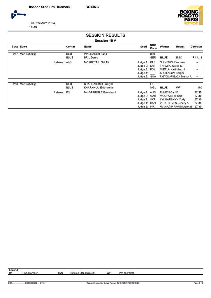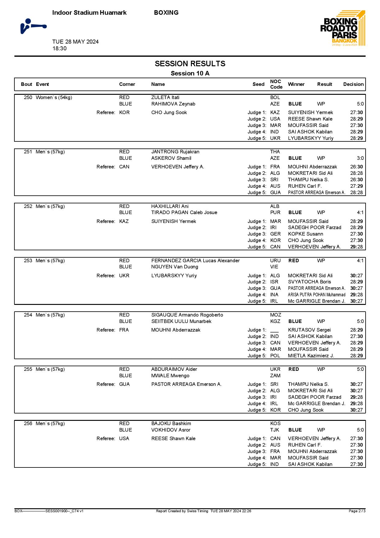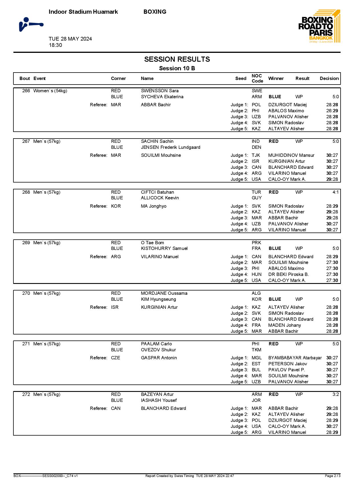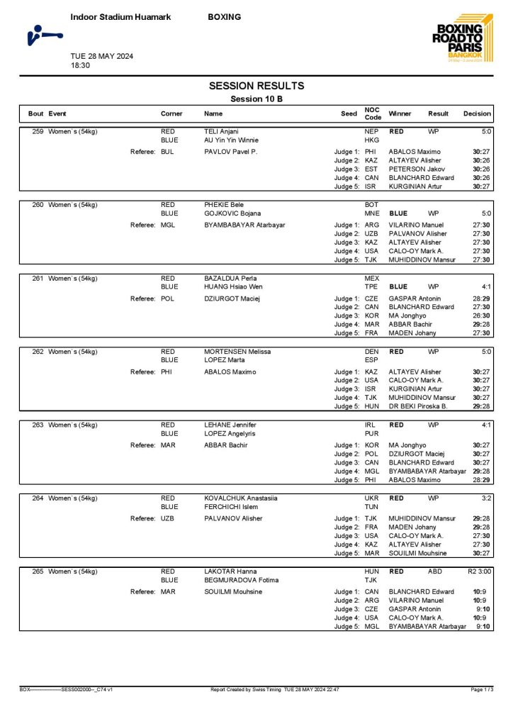 2nd World Olympic Boxing Qualifying Event in Bangkok, Thailand - Day5 Session10 Results