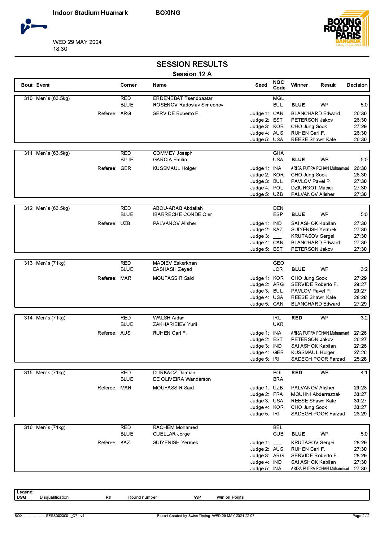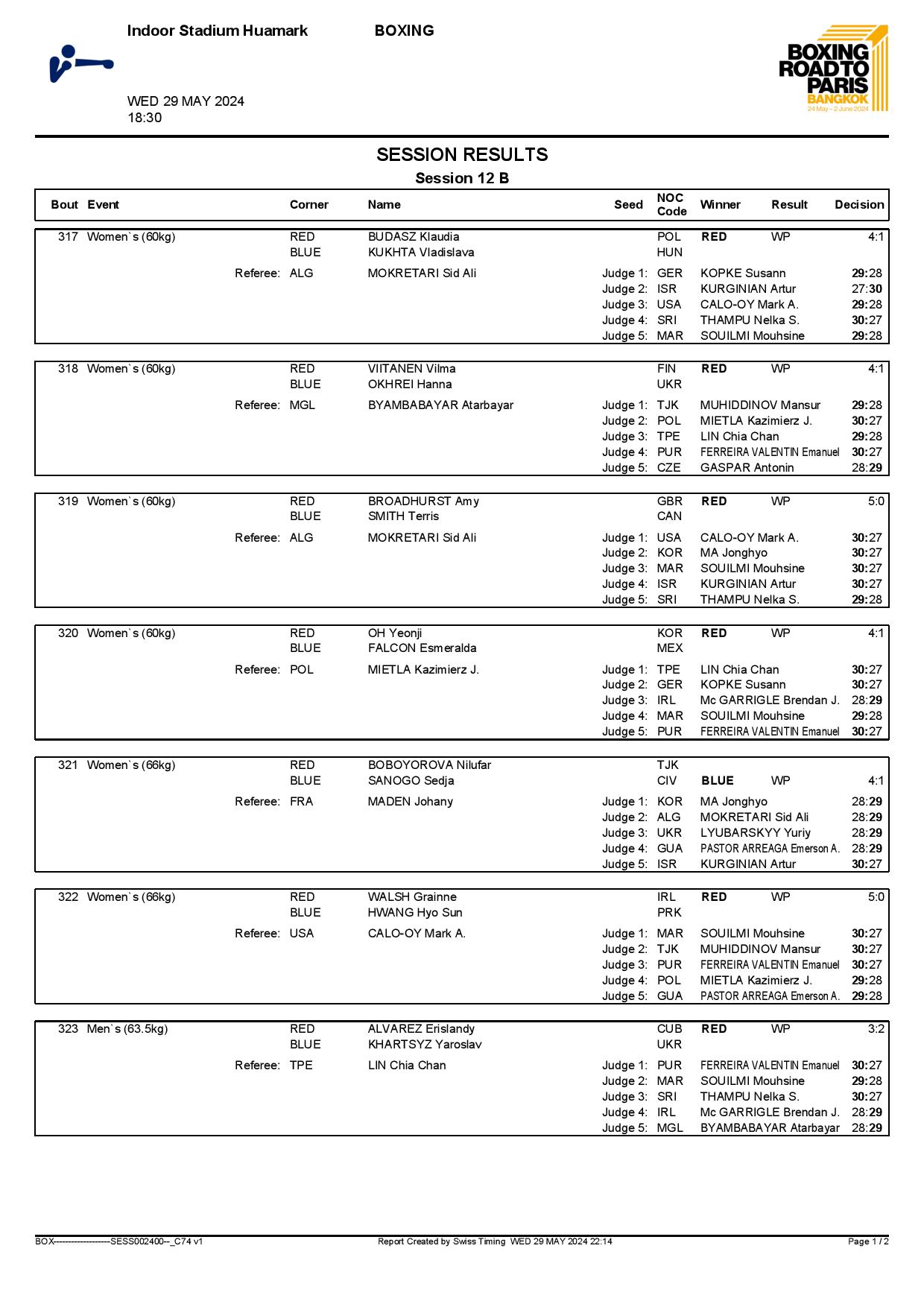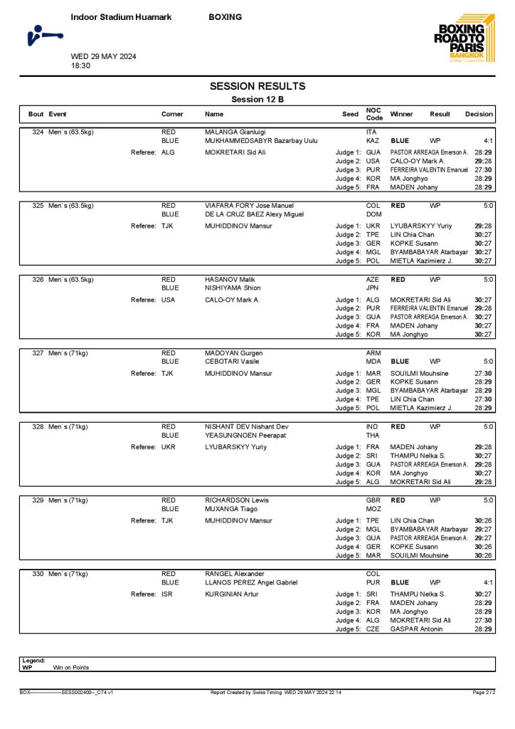 2nd World Olympic Boxing Qualifying Event in Bangkok, Thailand - Day6 Session12 Results