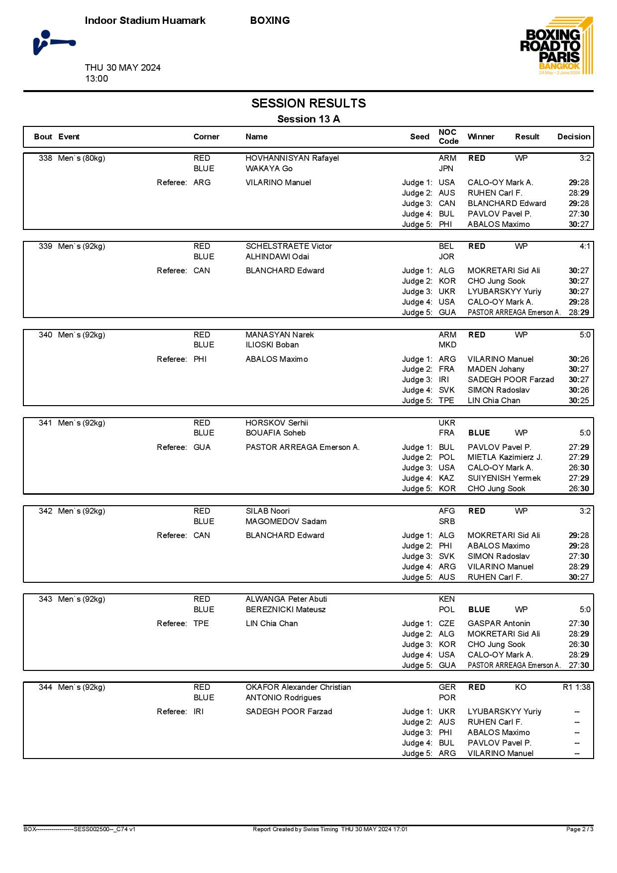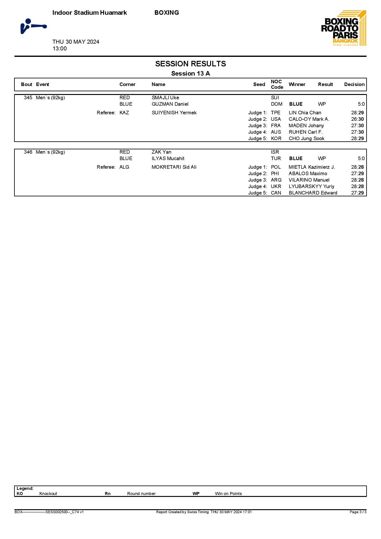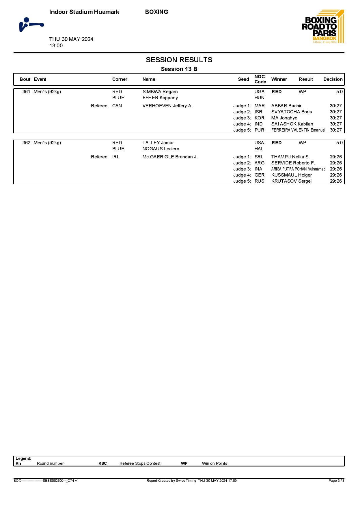2nd World Olympic Boxing Qualifying Event in Bangkok, Thailand - Day7 Session13 Results