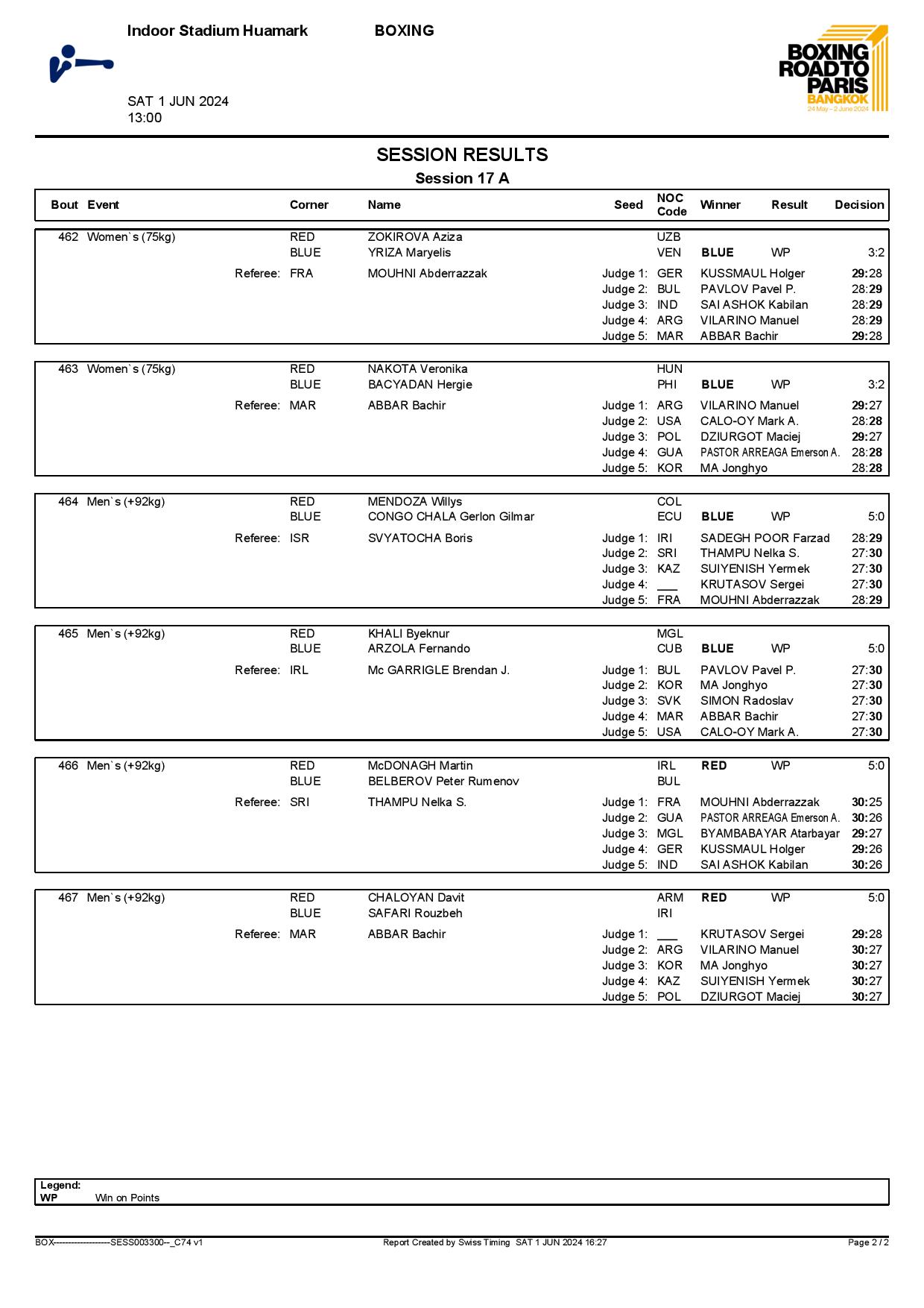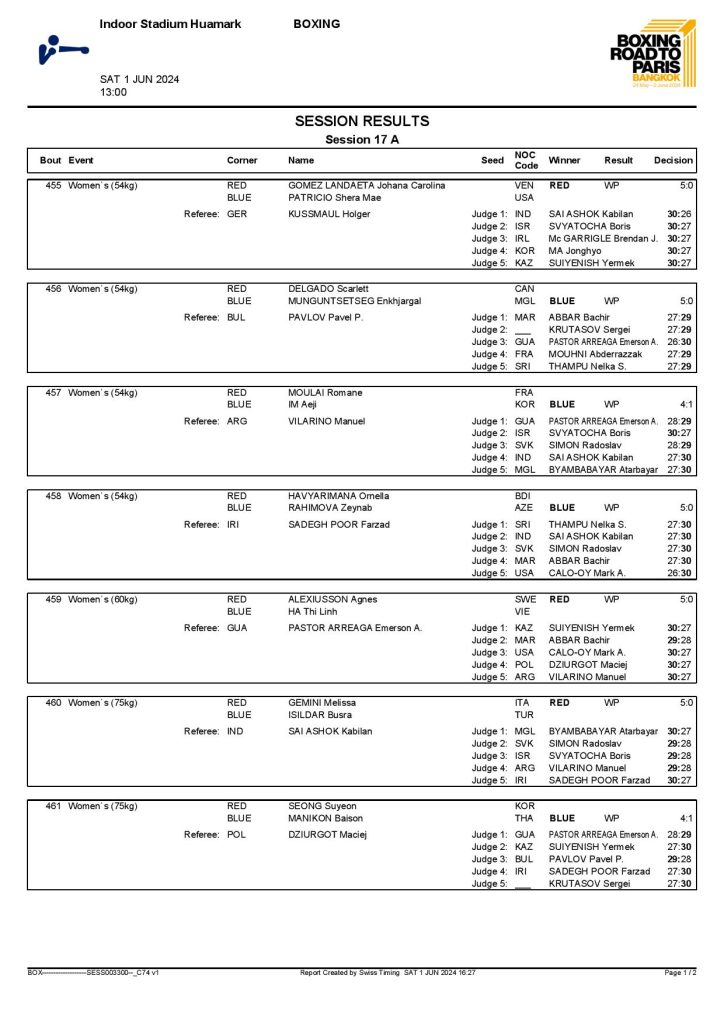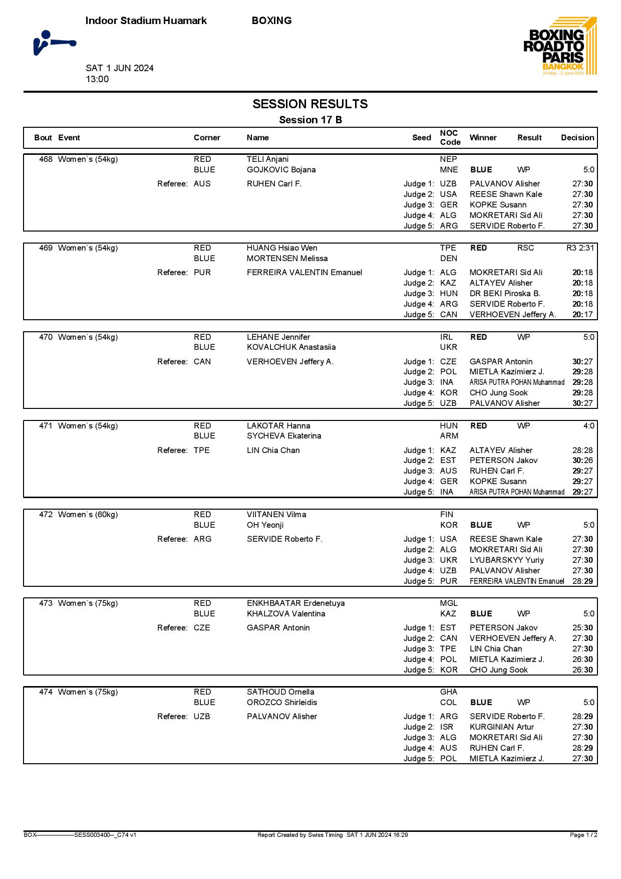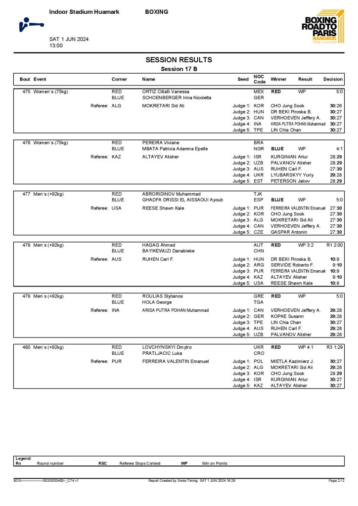 2nd World Olympic Boxing Qualifying Event in Bangkok, Thailand - Day9 Session17 Results