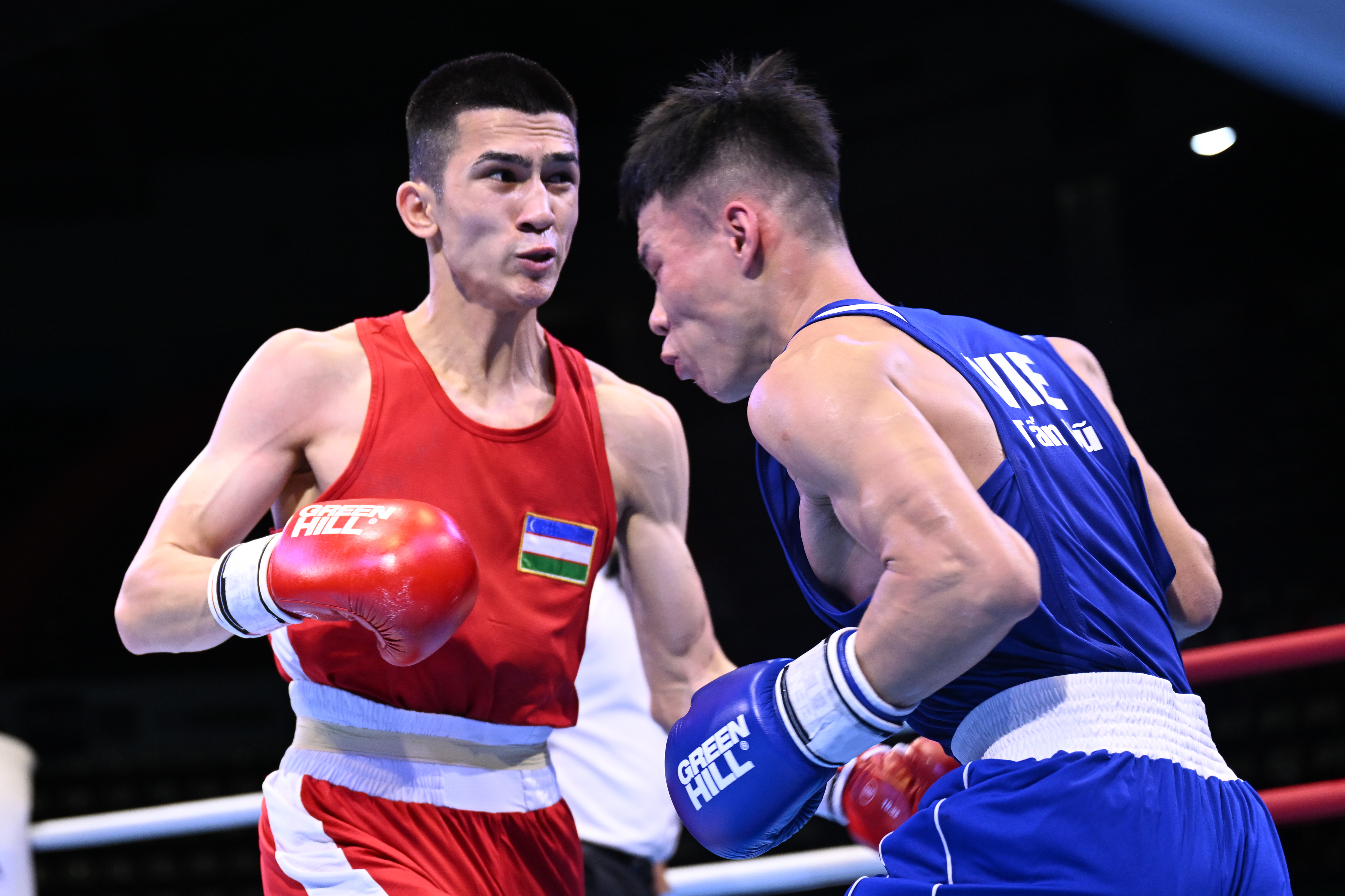 Uzbekistan’s southpaw Shokhrukh Abdumalikov boxer had a difficult job against Vietnam’s strongly developed Vu Huynh Tan but finally he managed to join the semi-finals.