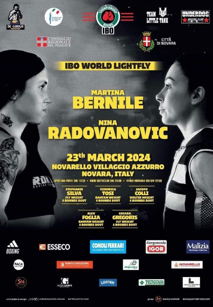 Italy’s Martina Bernile will fight Nina Radovanovic of Serbia for IBO World title in light-flyweight on Saturday night (March 23) in Piemonte, Italy.