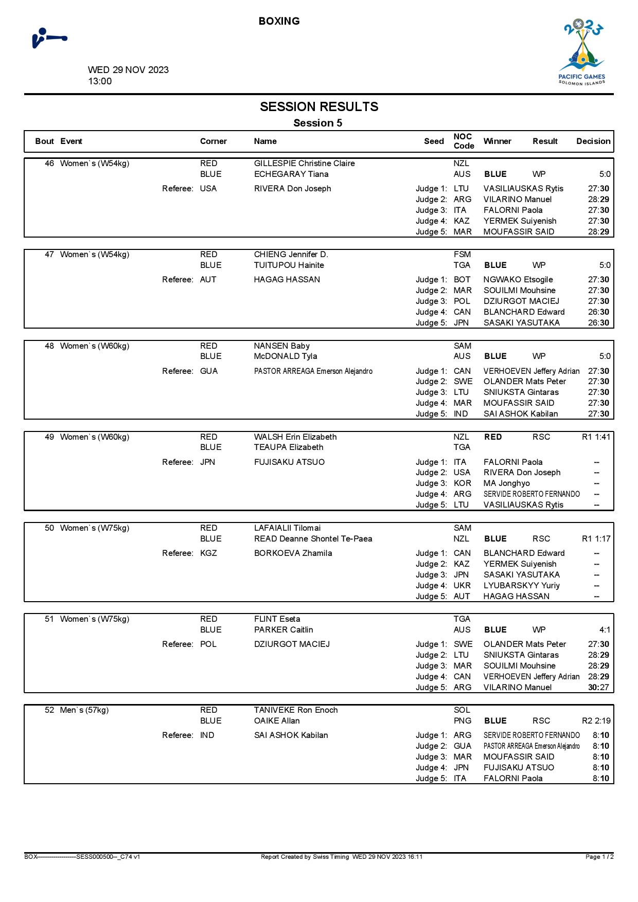 Australia’s new lightweight (60kg) boxer in the female squad, Tyla McDonald defeated Samoa’s Baby Nansen in the last four and she can expect a hard battle against New Zealand’s ex-Irish Erin Walsh who eliminated Tonga’s Elizabeth Teaupa in a one-sided bout.