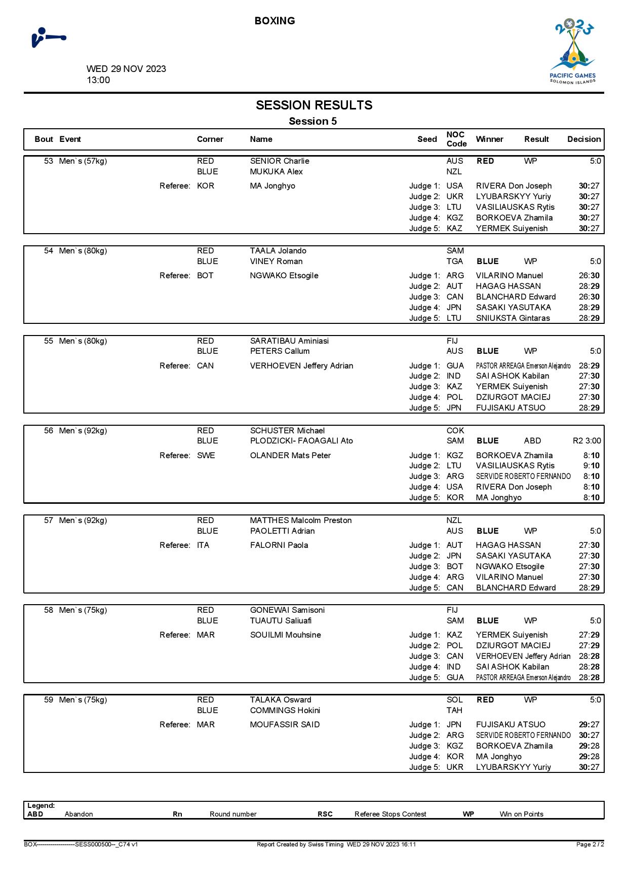 Several top finals will be held at the boxing tournament of the Pacific Games in Honiara, Solomon Islands after the first part of the semi-finals.