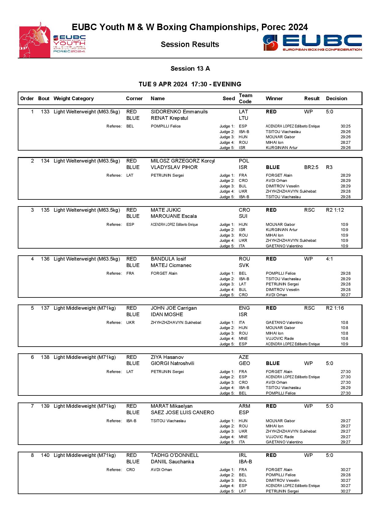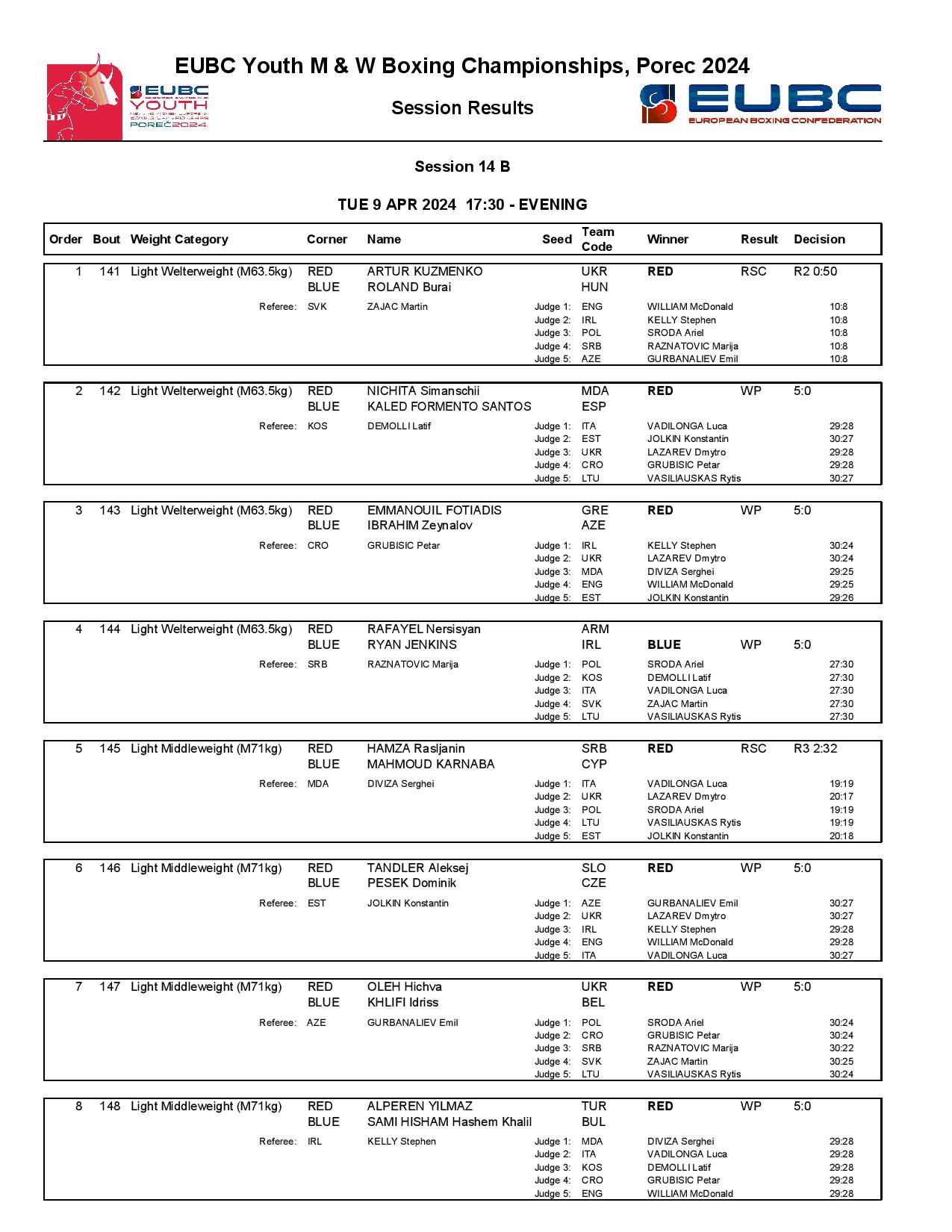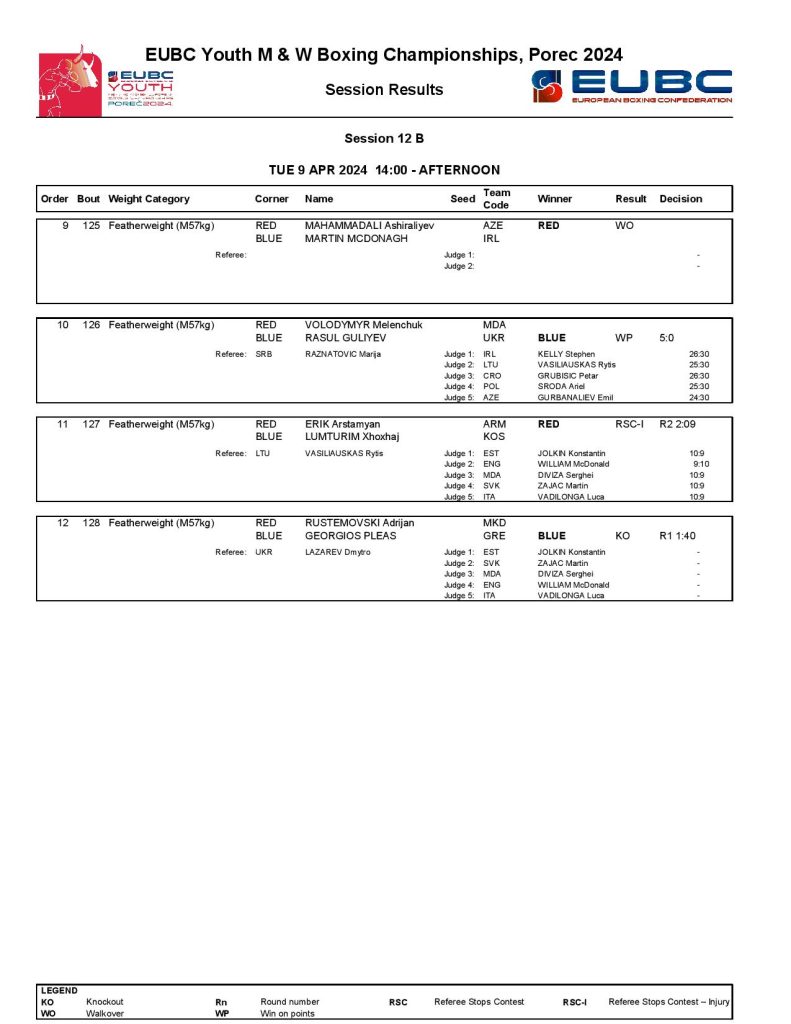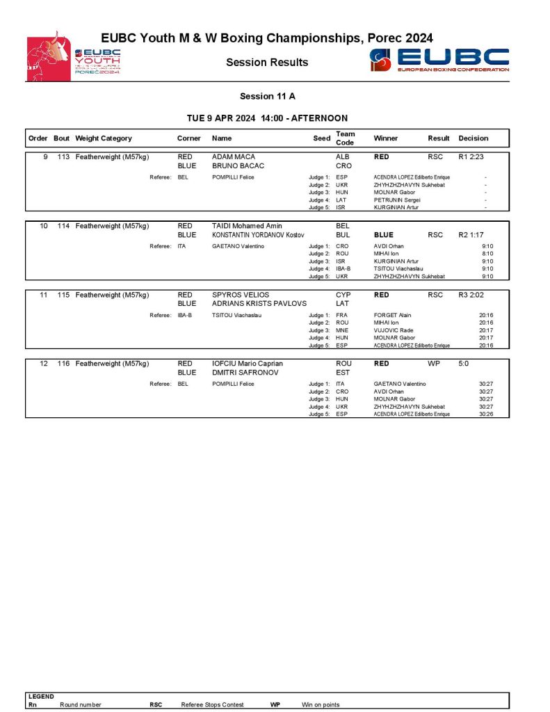 Armenia’s Erik Arstamyan had a powerful performance against Kosovo’s Lumturim Xhoxhaj and he managed to join the quarter-finals at the featherweight (57kg). Greece’s Georgios Pleas delivered a classic KO success over North Macedonia’s Adrijan Rustemovski in the last bout of the day.