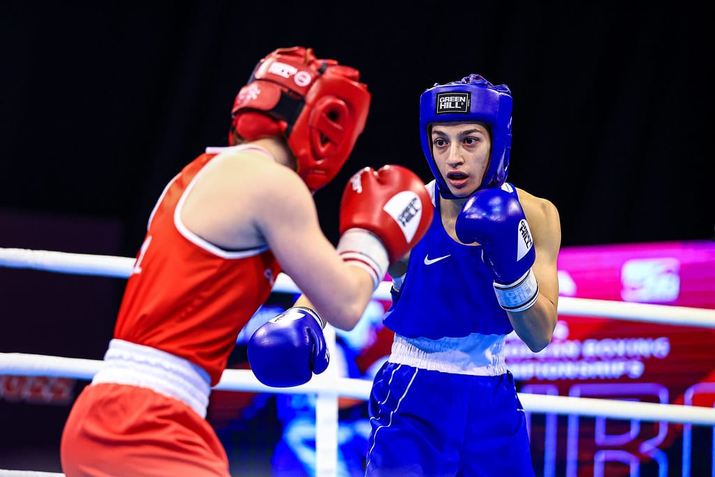 Romania’s Amalia Tugui and Azerbaijan’s European Champion Emili Rzayeva had a brilliant battle at the women’s welterweight (66kg) in Porec. The Azeri talent had a tight advantage on the scorecards but Tugui landed decisive shots in the third and the Spanish referee confirmed her RSC success.