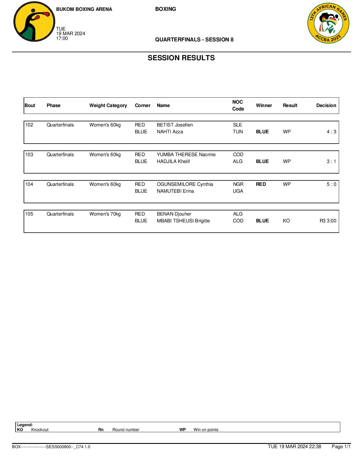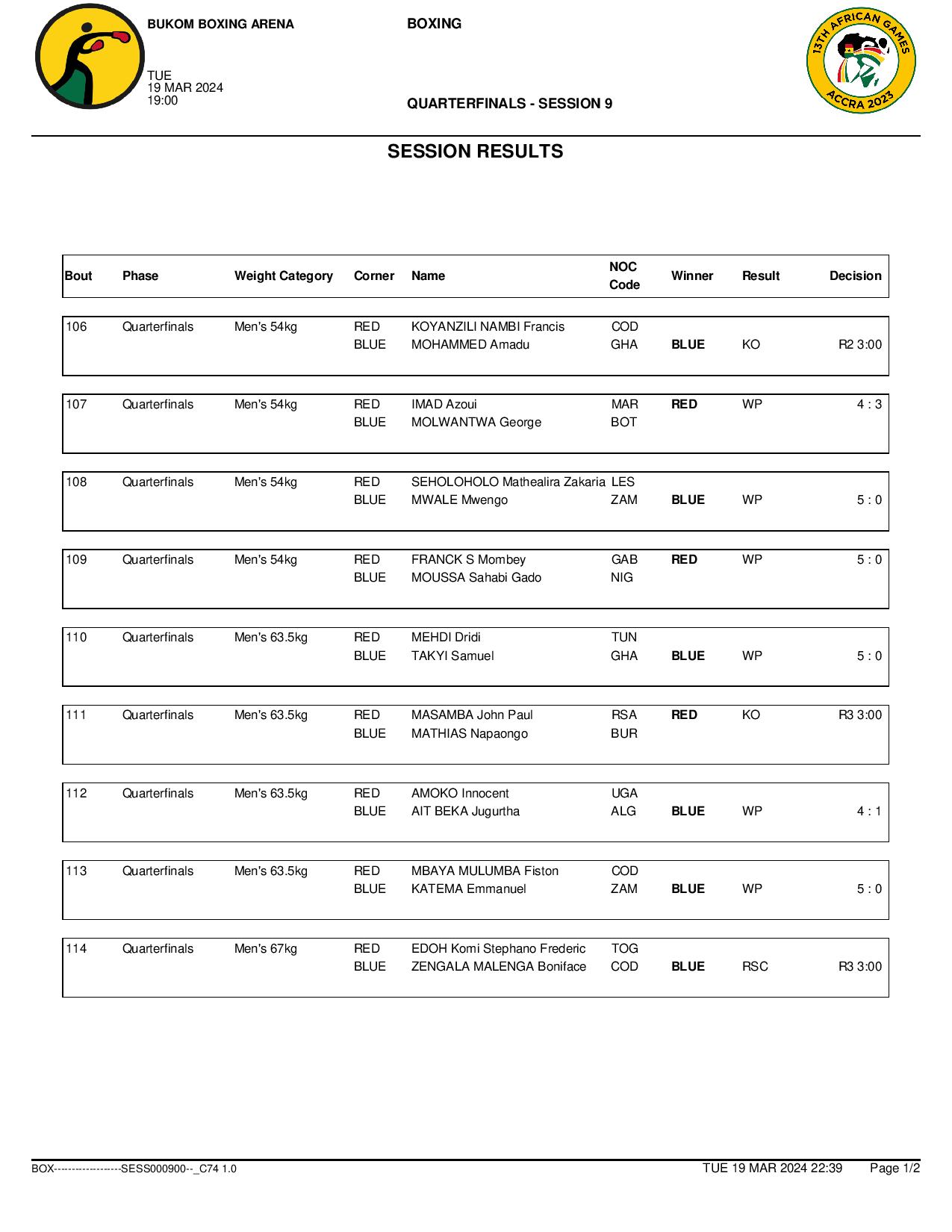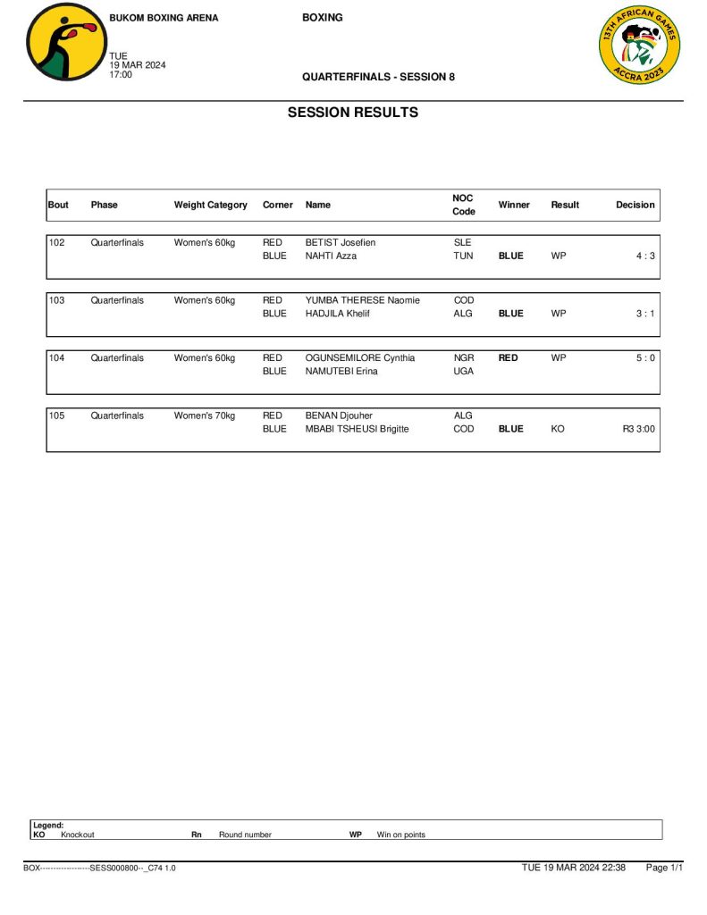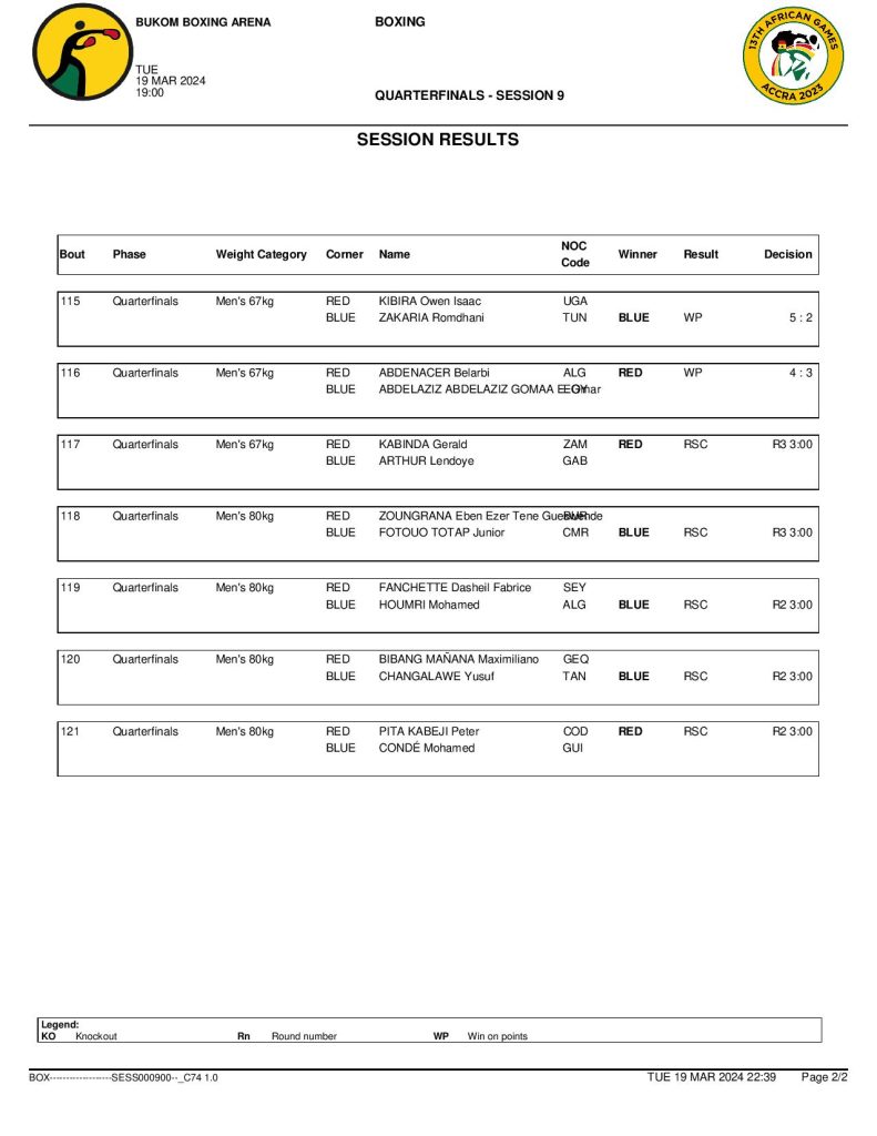 The next part of the quarter-finals were held in the boxing tournament of the All Africa Games in Accra, Ghana on Day5.