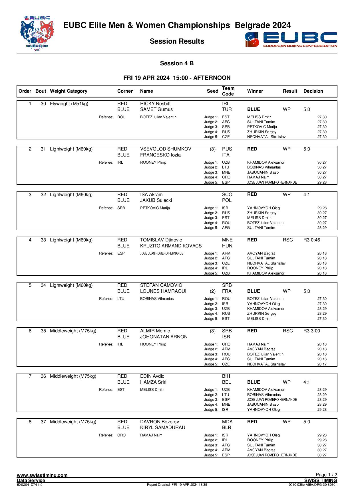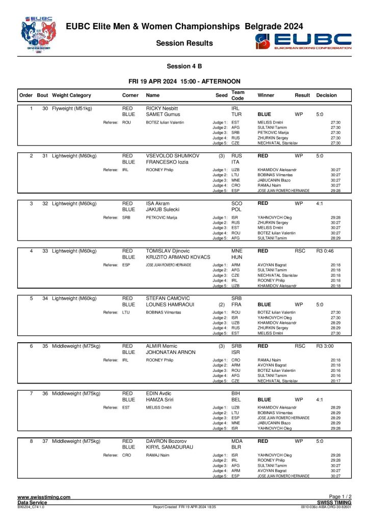Scotland’s Isa Akram is only 19 but he competed enough international events to beat Poland’s Jakub Sulecki at the lightweight (60kg). Another strong hopeful in this weight class, Montenegro’s Tomislav Djinovic stopped Hungary’s Kruzito Kovacs on their re-match.