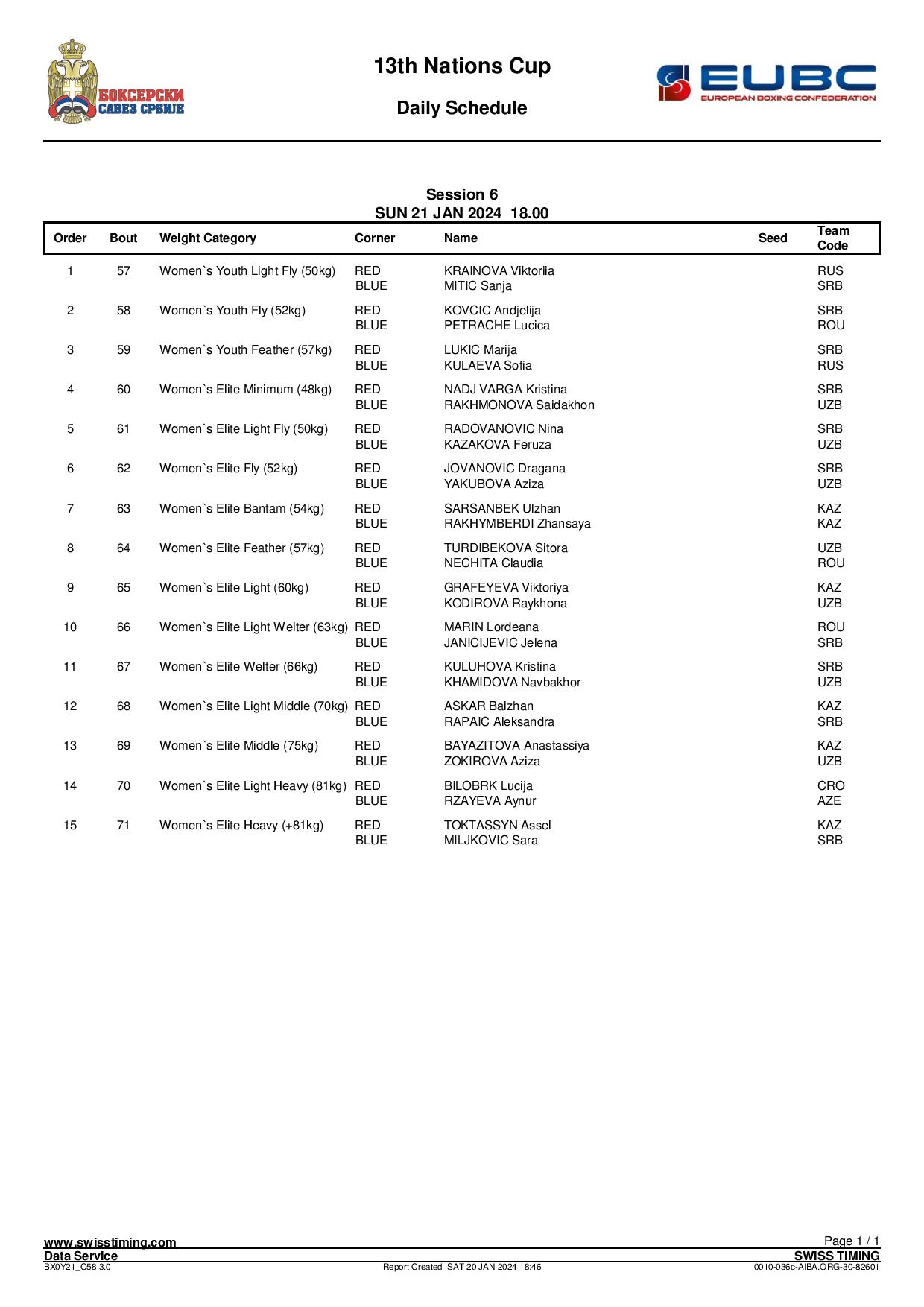 The finals will be held in the Nations Women's Cup in Sombor, Serbia today and the schedule has been issued.