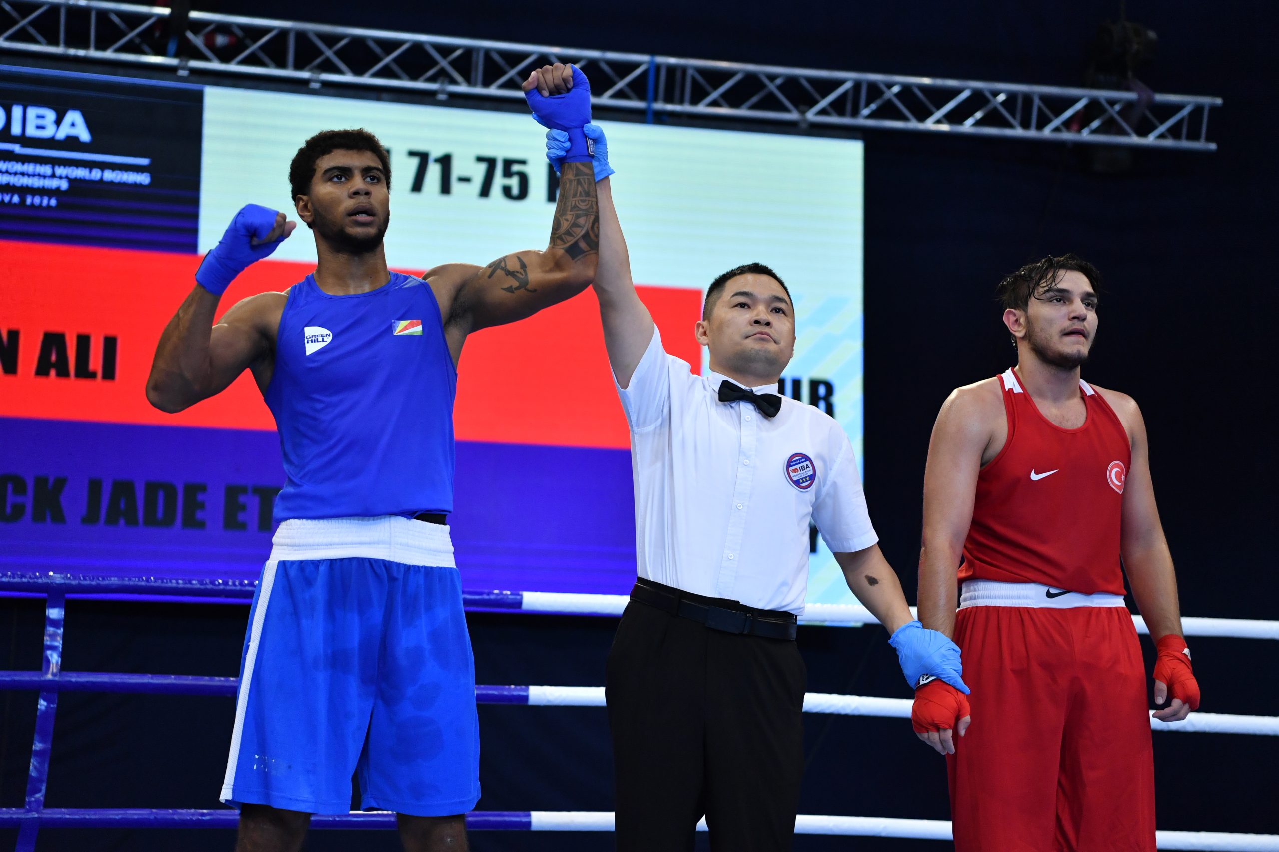 Russia’s Adam Murtazaliyev and Cuba’s Yurisniel Abreu will meet in the Round of 16 of the middleweight (75kg) following their victories today while Seychelles’ Jade Ethan Micock impressed in the last bout.