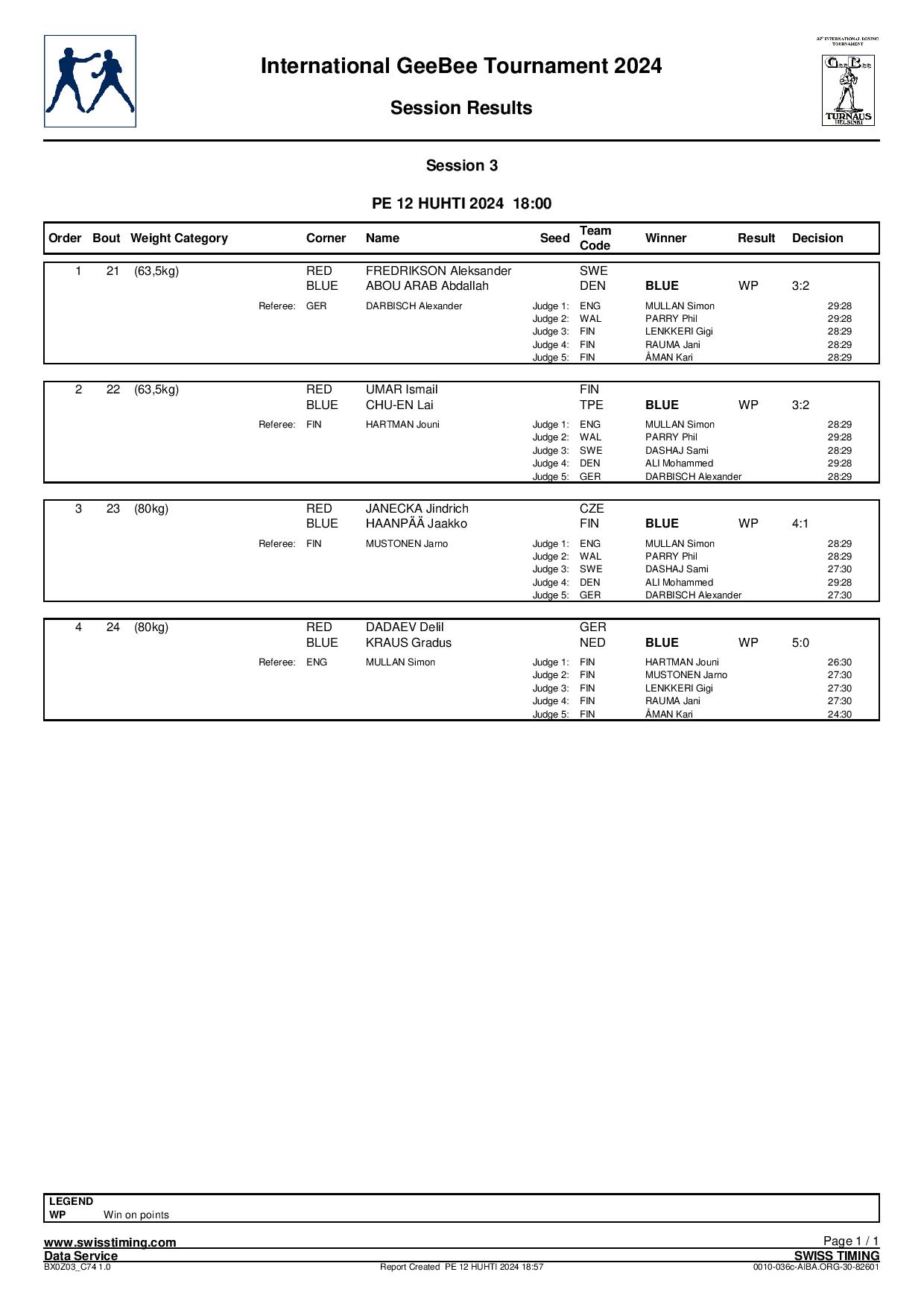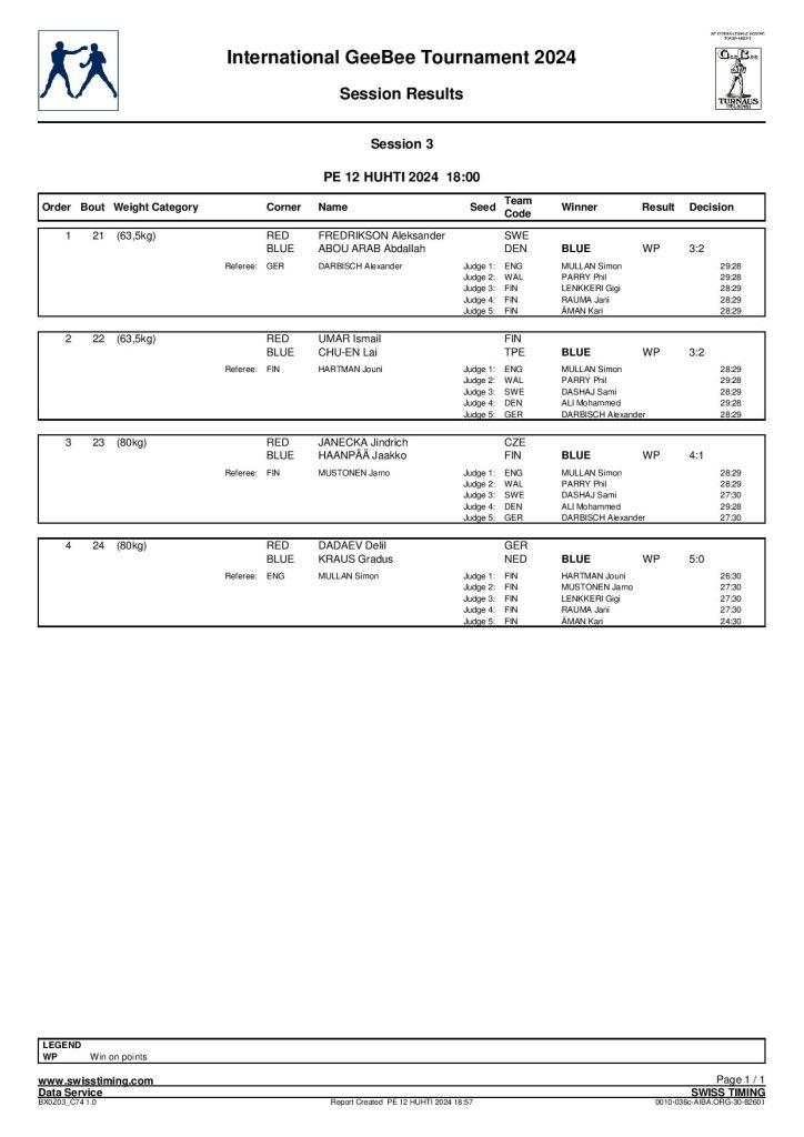 Alexander Fredriksson returned to the Swedish team after a break and he had a manly battle against Denmark’s Abdalla Abou Arab but his efforts were not enough to win today. Chinese Taipei’s Lai Chu En has qualified already for the Paris Olympics and he had a smart boxing against Finland’s Ismail Umar in the next light welterweight (63.5kg) bout.