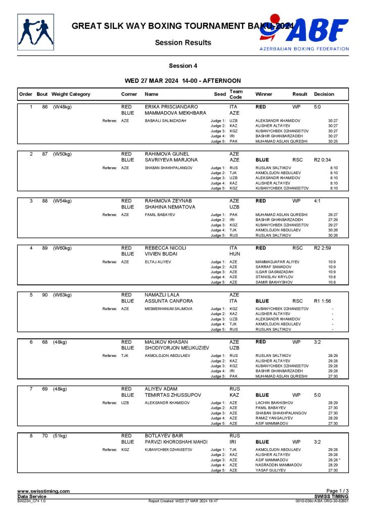 Italy earned three female gold medals in the fourth day of boxing at the Great Silk Way Tournament in Baku.
