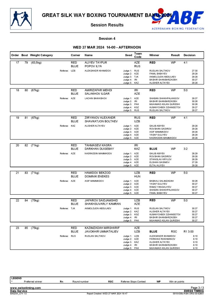 Azerbaijan’s Khasan Malikov had a tight success over Uzbekistan’s Asian U22 silver medallist Shodiyorjon Melikuziev and he joined the final at the minimumweight (48kg). The local boy will meet for the title Kazakhstan’s World Champion, the 36-year-old Temirtas Zhussupov on Day5.