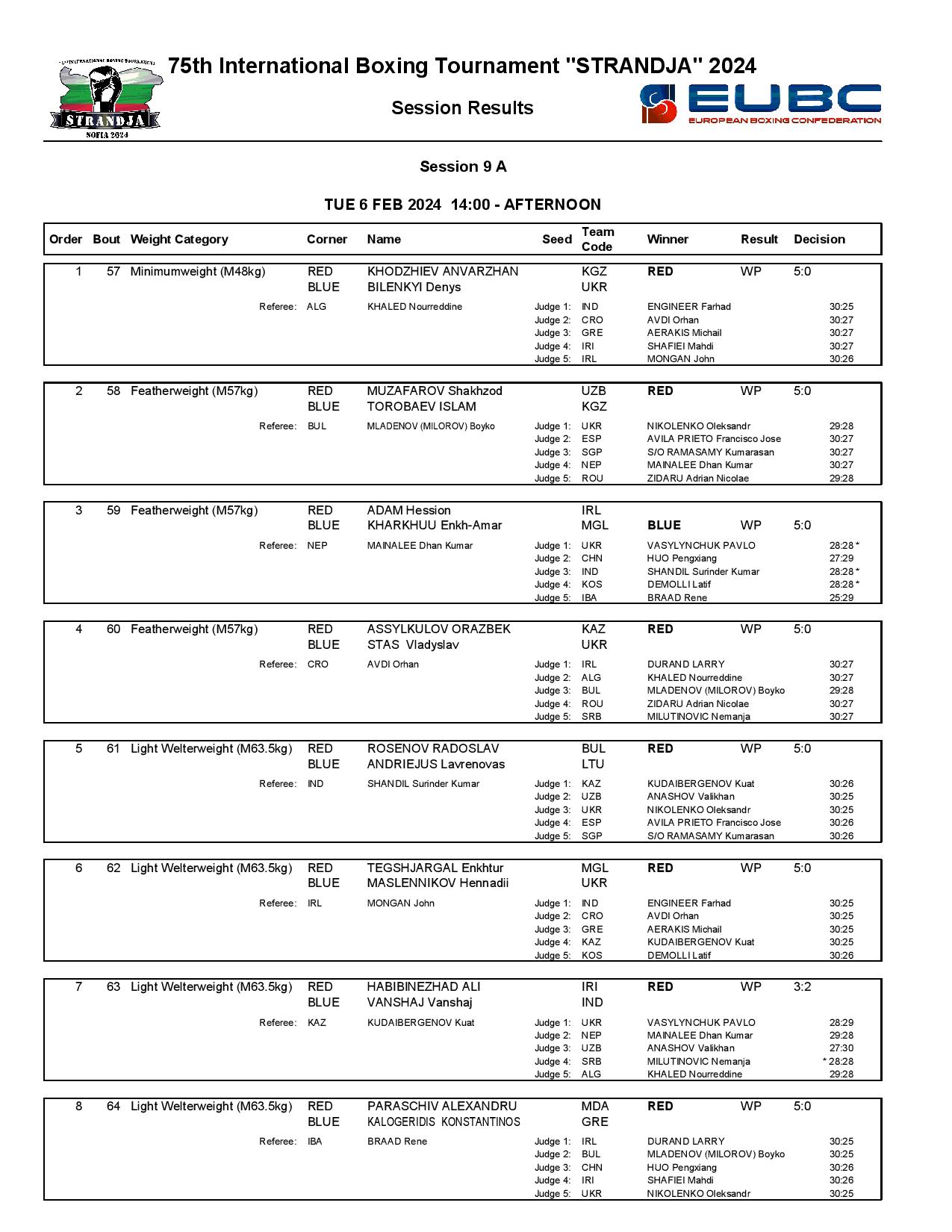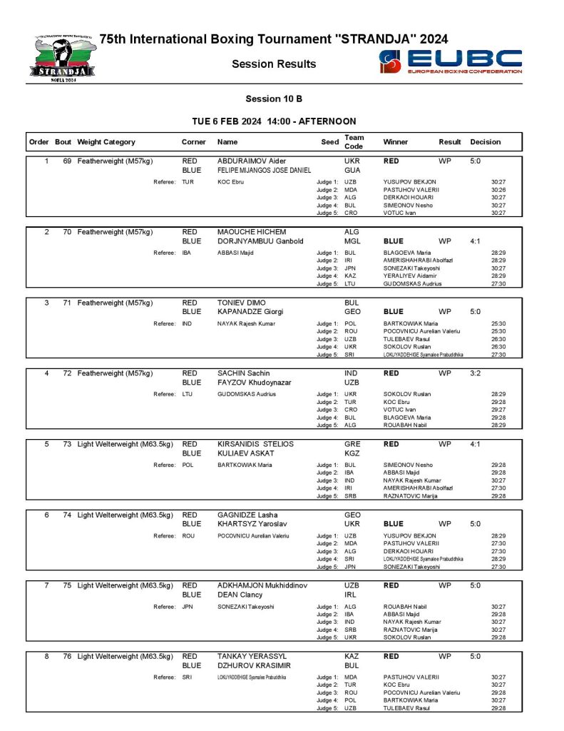 The next session has finished in the 75th Strandja Memorial Tournament in Sofia, Bulgaria where more than 250 boxers are participating from 28 countries.