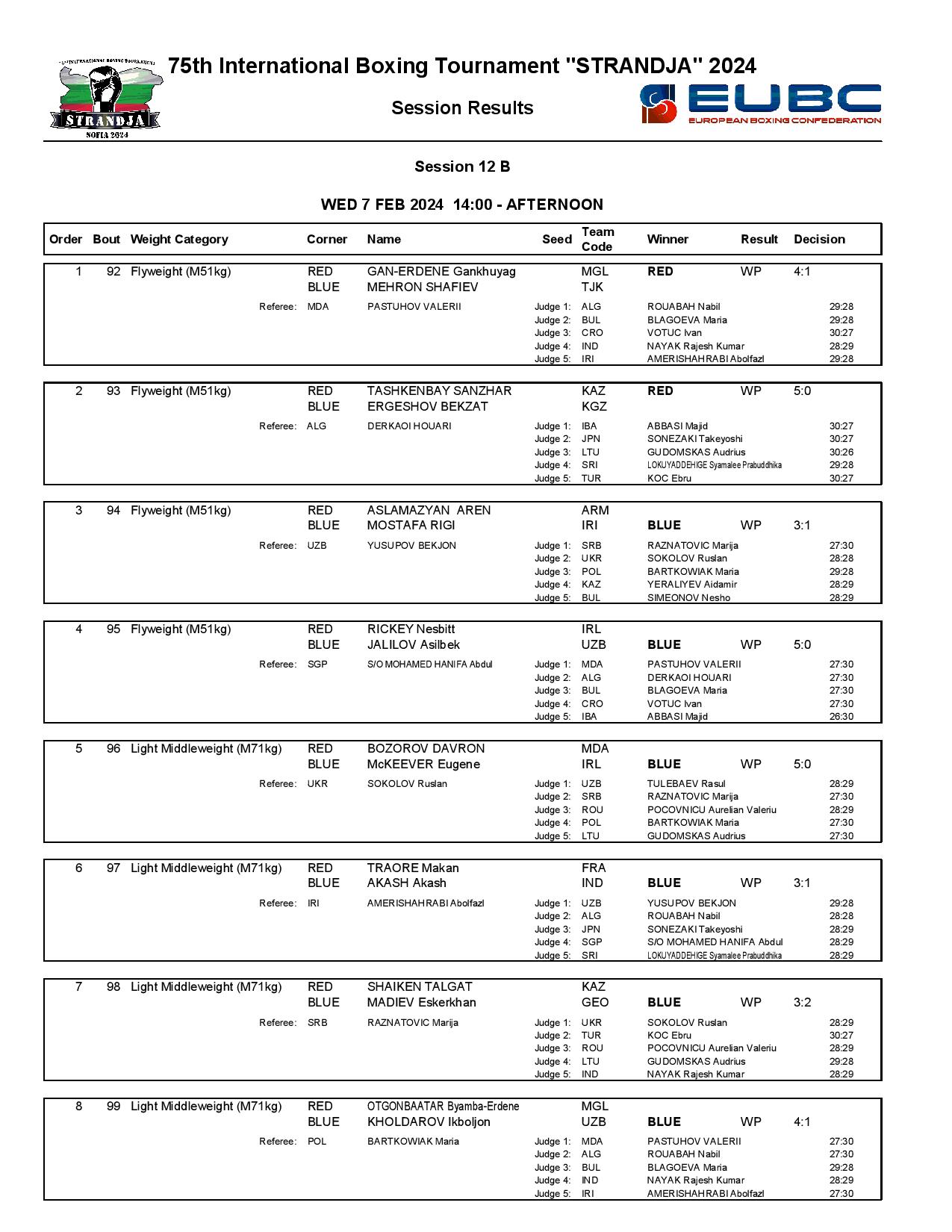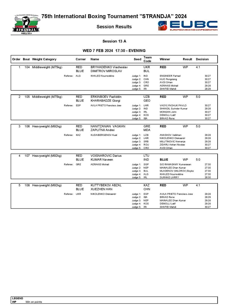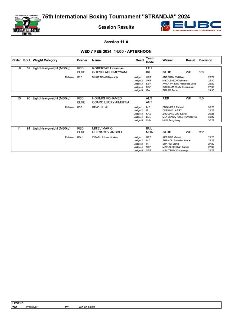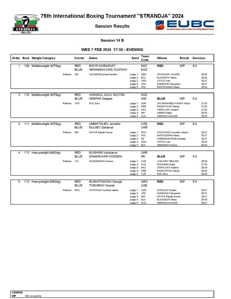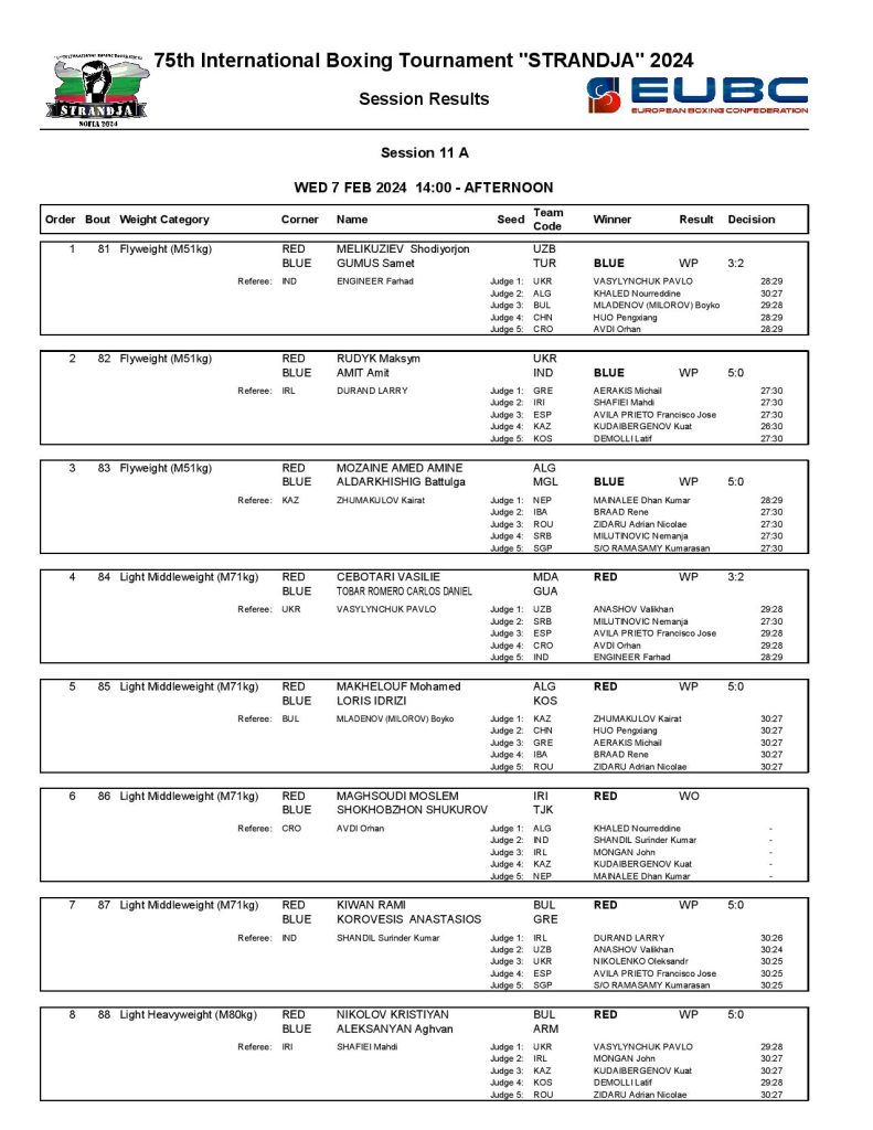Strandja Memorial Tournament in Sofia, Bulgaria - Day4 Results