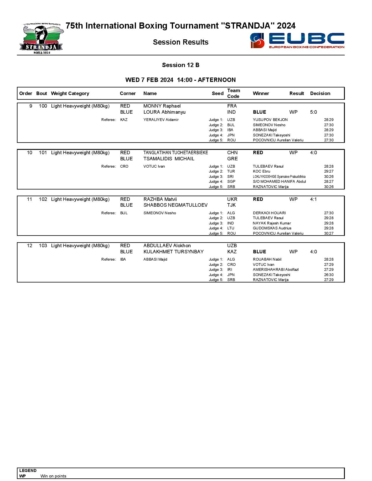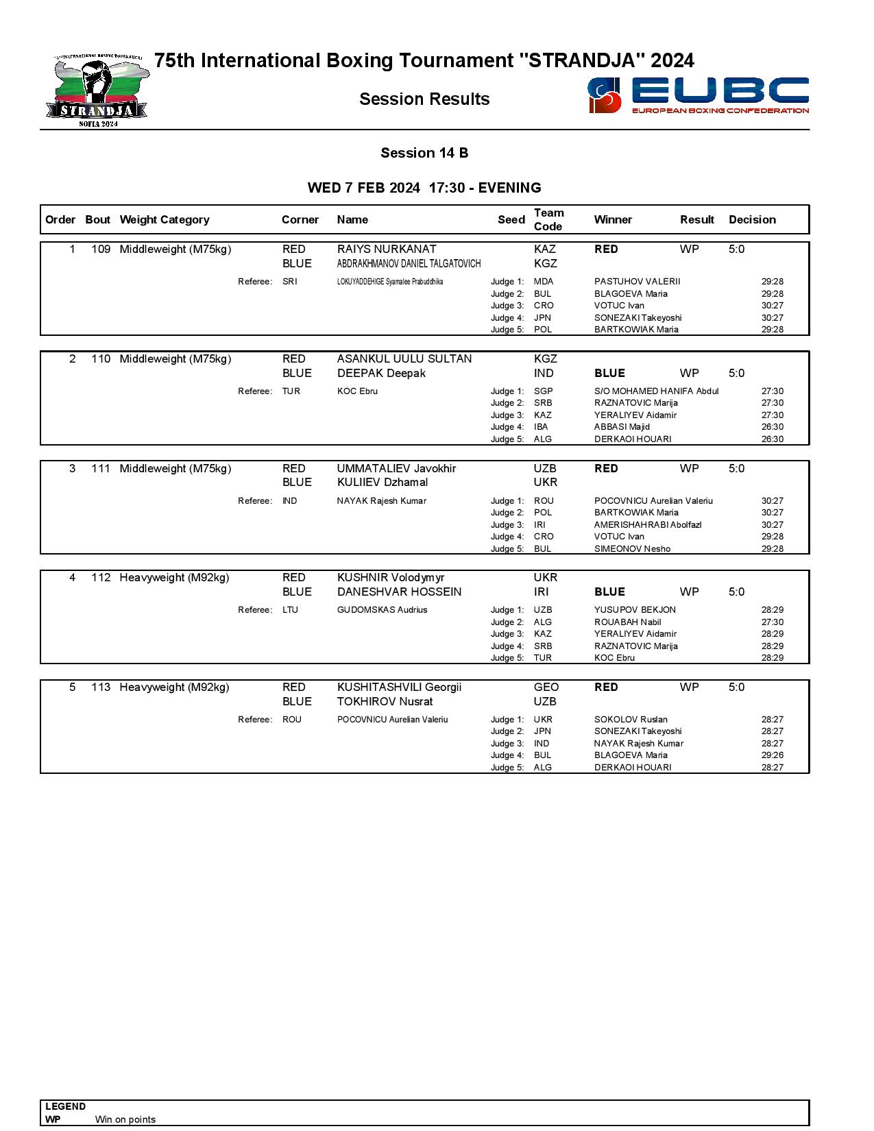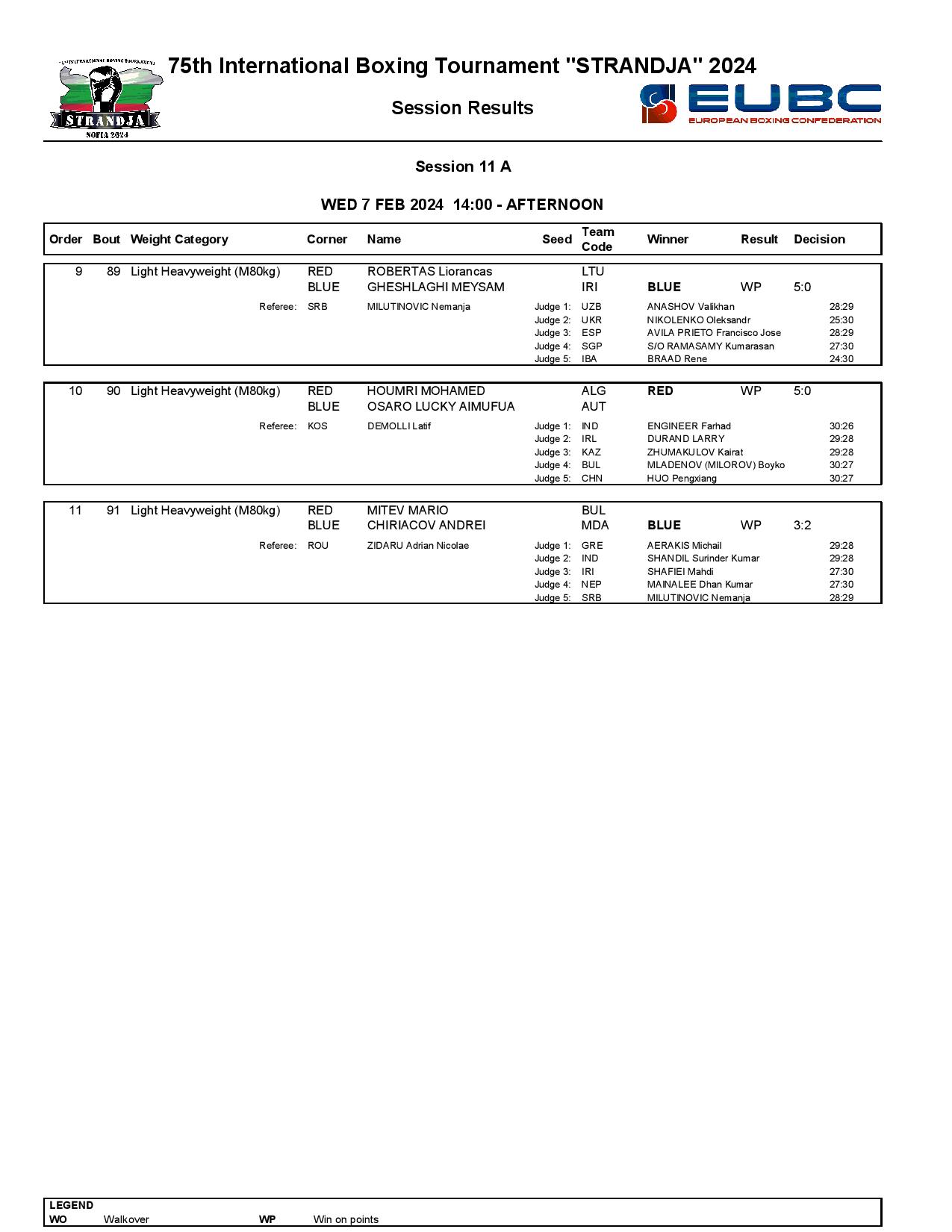 Strandja Memorial Tournament in Sofia, Bulgaria - Day4 Results