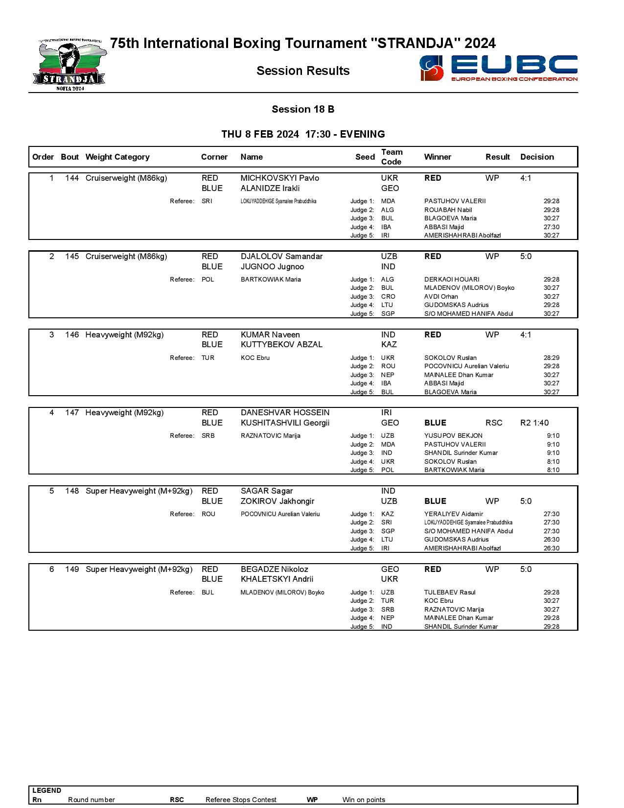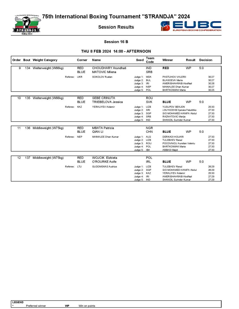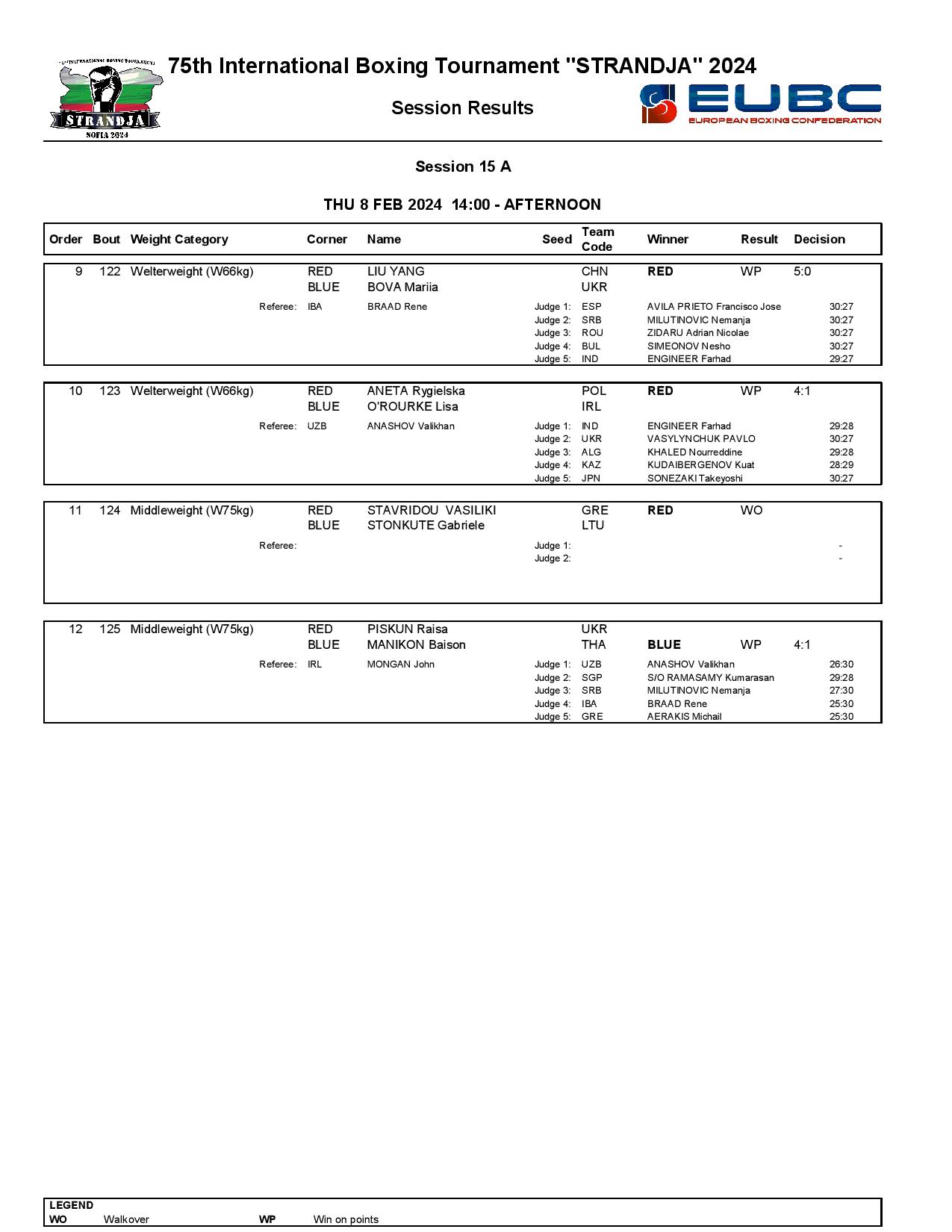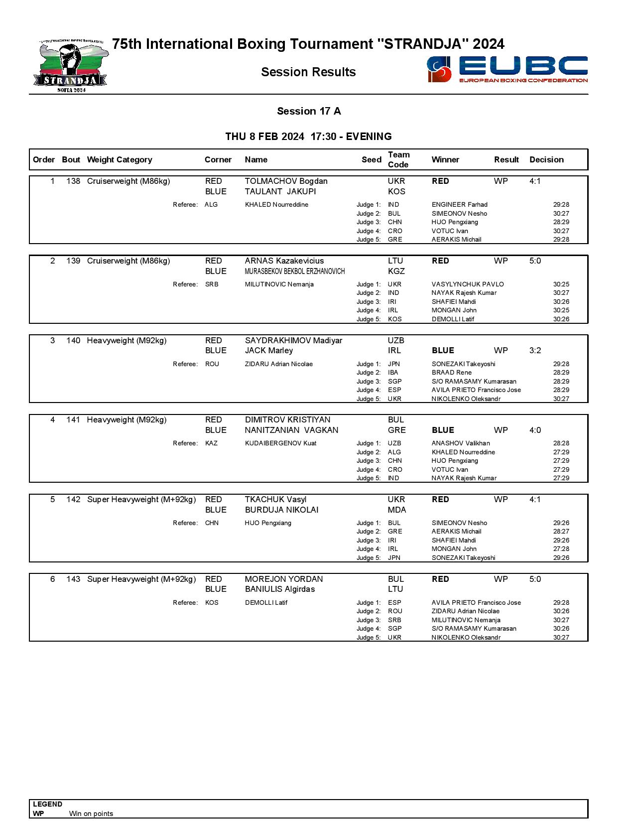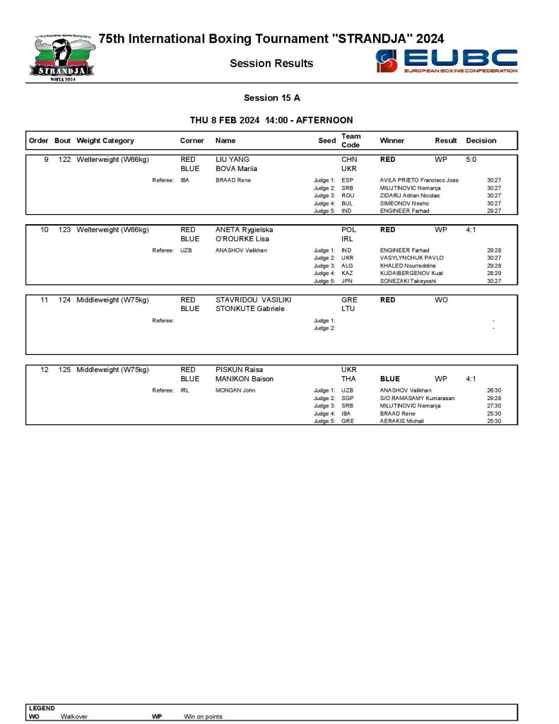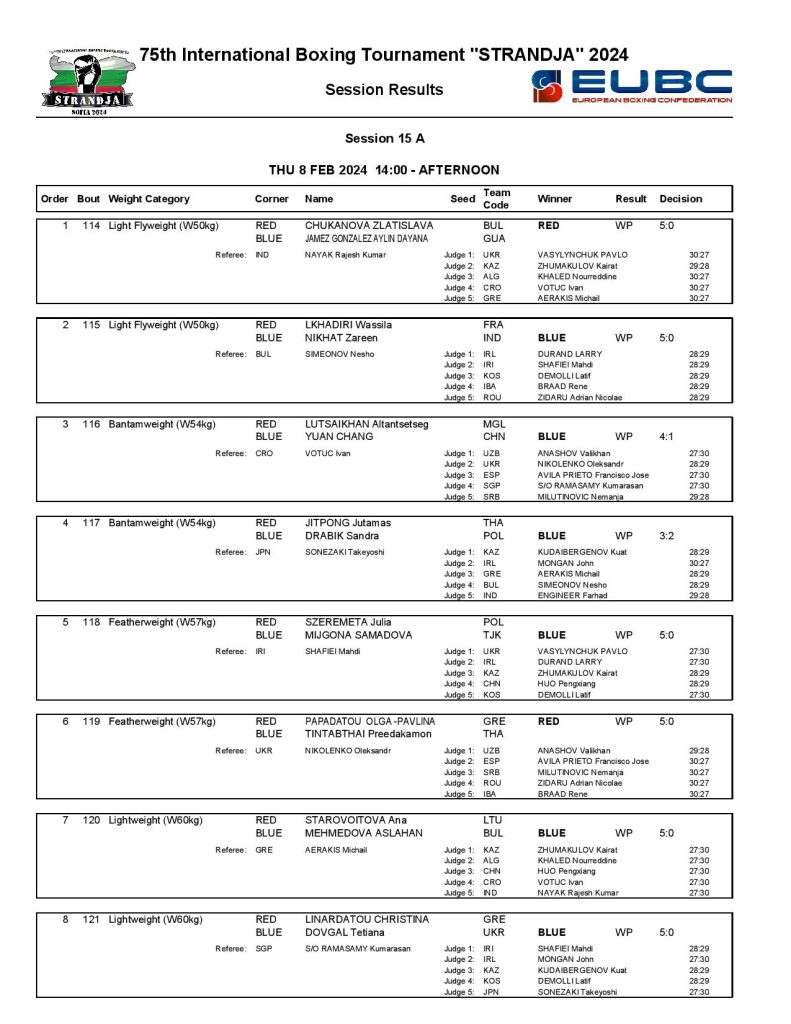 Strandja Memorial Tournament in Sofia, Bulgaria - Day5 Results