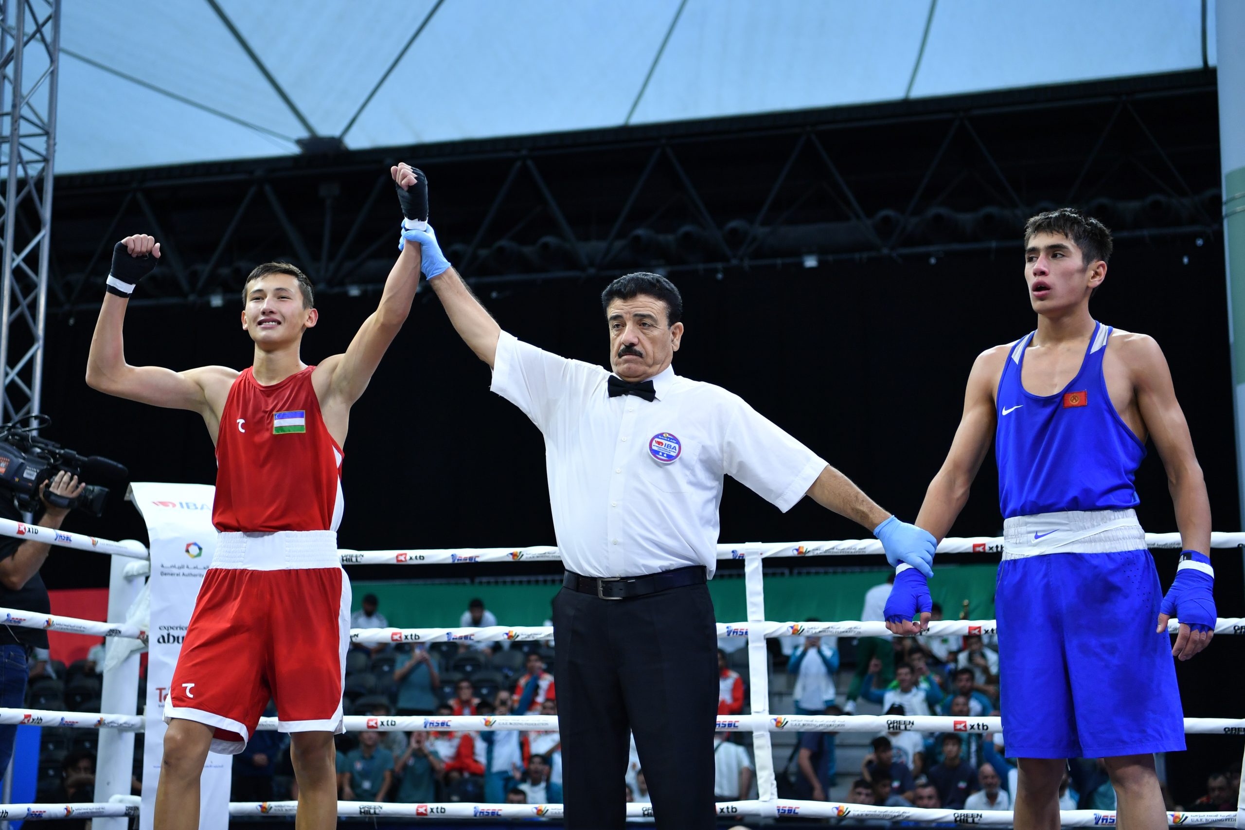 Uzbekistan’s 16-year-old Asilbek Abdusamadov looked confident from the first seconds against Kyrgyzstan’s Fazliddin Vokhidov and after the standing counts the Iranian referee stopped their middleweight (75kg) quarter-final in the third round.