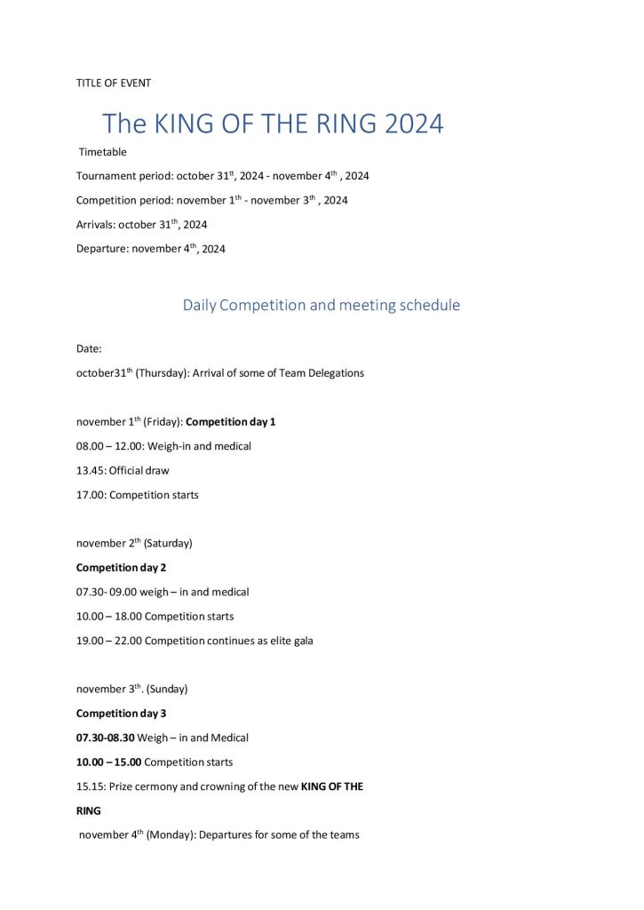 The handbook of the next King of the Ring Tournament is available with the registrations