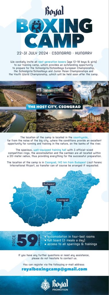 The Royal Boxing Camp will be held under the umbrella of the Royal Promotion in Csongrad, Hungary between July 22 and 31.