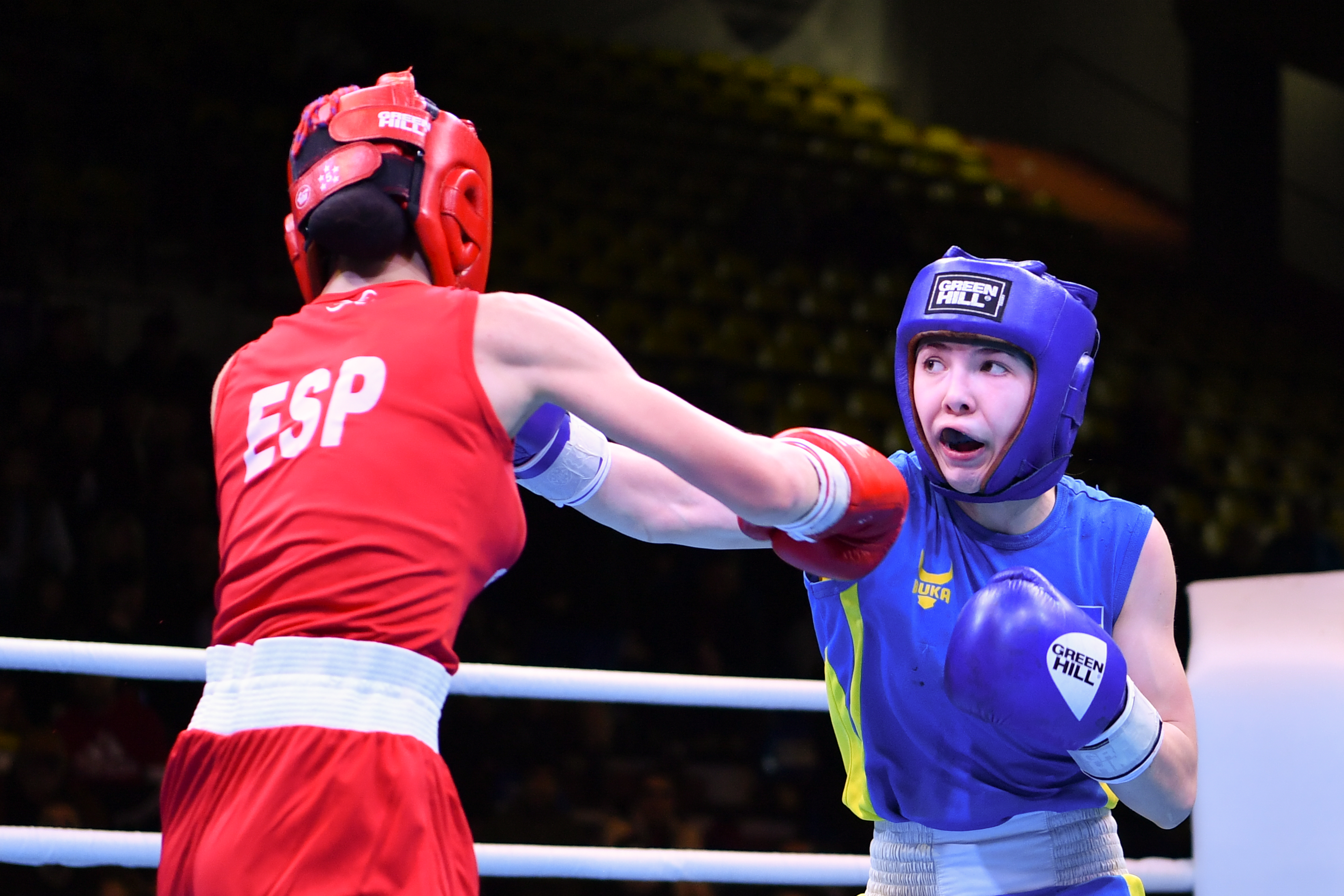 Slovakia’s Kaja Kollarova shocked Ukraine’s Yelyzaveta Asatova in the first round with her effective jabs from longer range. The Slovakian was confident and the referee counted the Ukrainian twice which guaranteed Kollarova’s clear success.