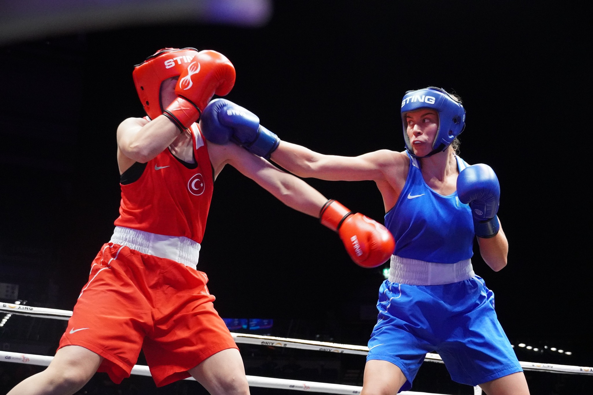 Italy’s Sirine Charaabi used the best strategy against Turkey’s World Champion Hatice Akbas and she shocked her top opponent in the first and second rounds. The referee counted both boxers in the third and Charaabi was able to keep the advantage until the last gong.