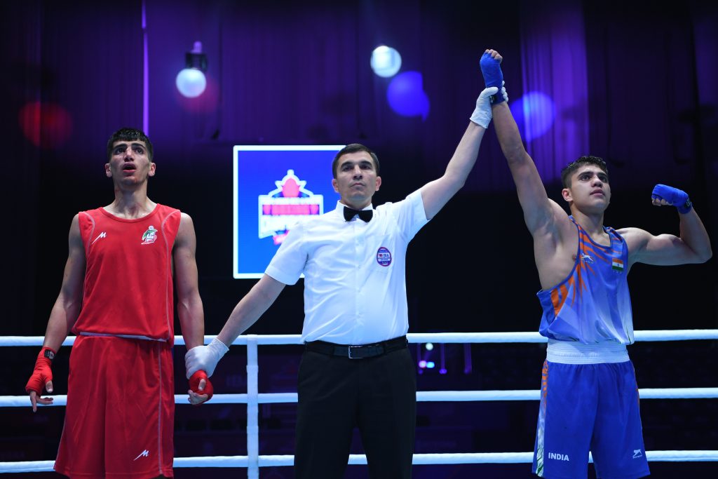 Uzbekistan’s Samandar Khabibullayev became the first medallist at the light middleweight (71kg) following his success over Turkmenistan’s Ylham Nazarov. India’s Priyanshu landed several tough shots in his quarter-final bout and he eliminated Chinese Taipei’s Wu Yu En by referee stopped the contest.